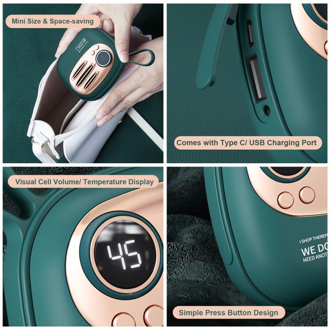 The elegant design electric hand warmer with 5000mAh large capacity can also be used as a useful p-ower . Made of superb ABS&aluminum alloy material and designed with better heating elements, it's safe to use and nice enjoyment.