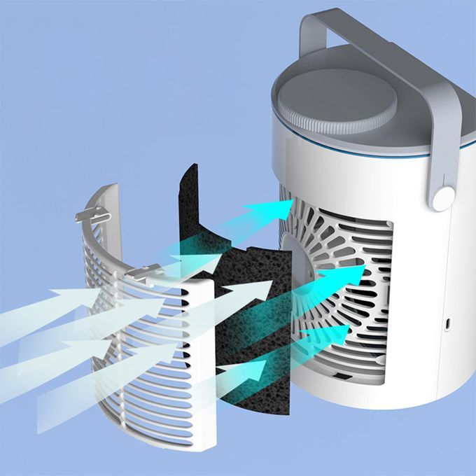 Desktop Air Cooler Fan: The air outlet wind direction can be manually adjusted up and down. Equipped with removable activated carbon filter, adsorb peculiar smell and filter air, easy to clean.
