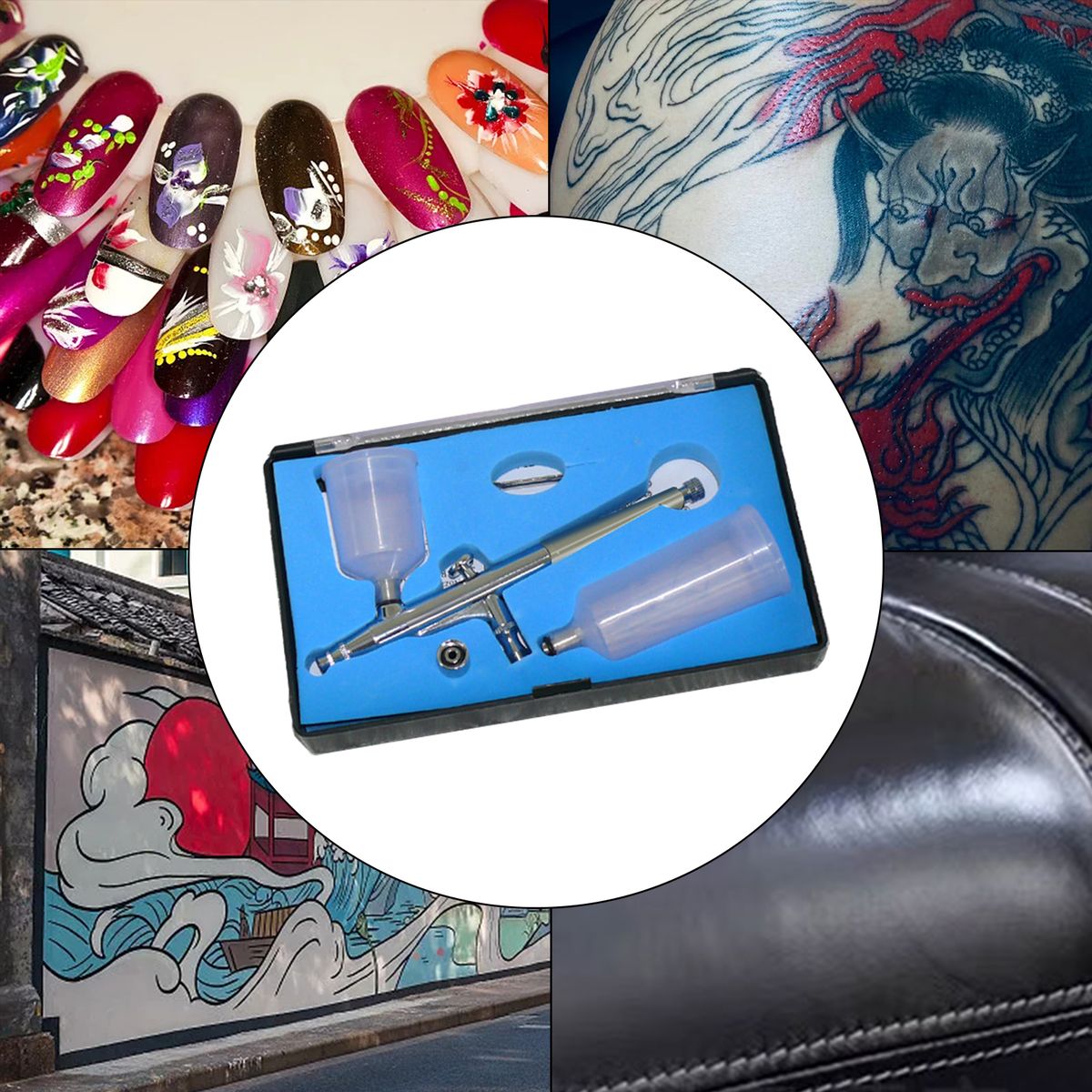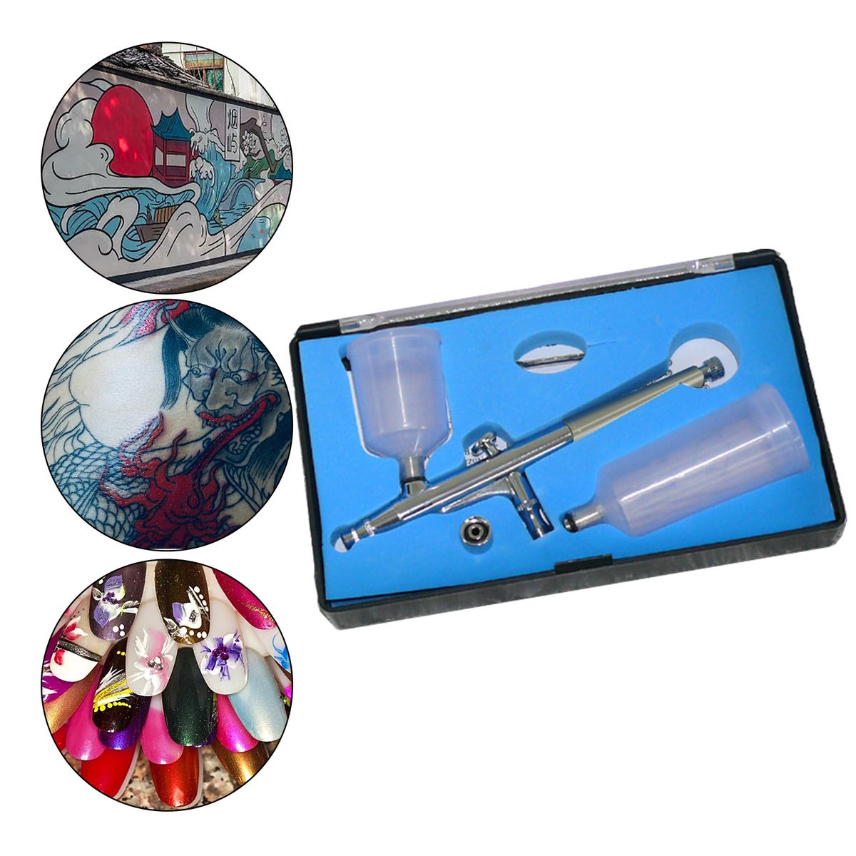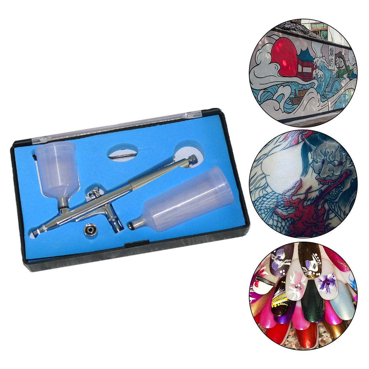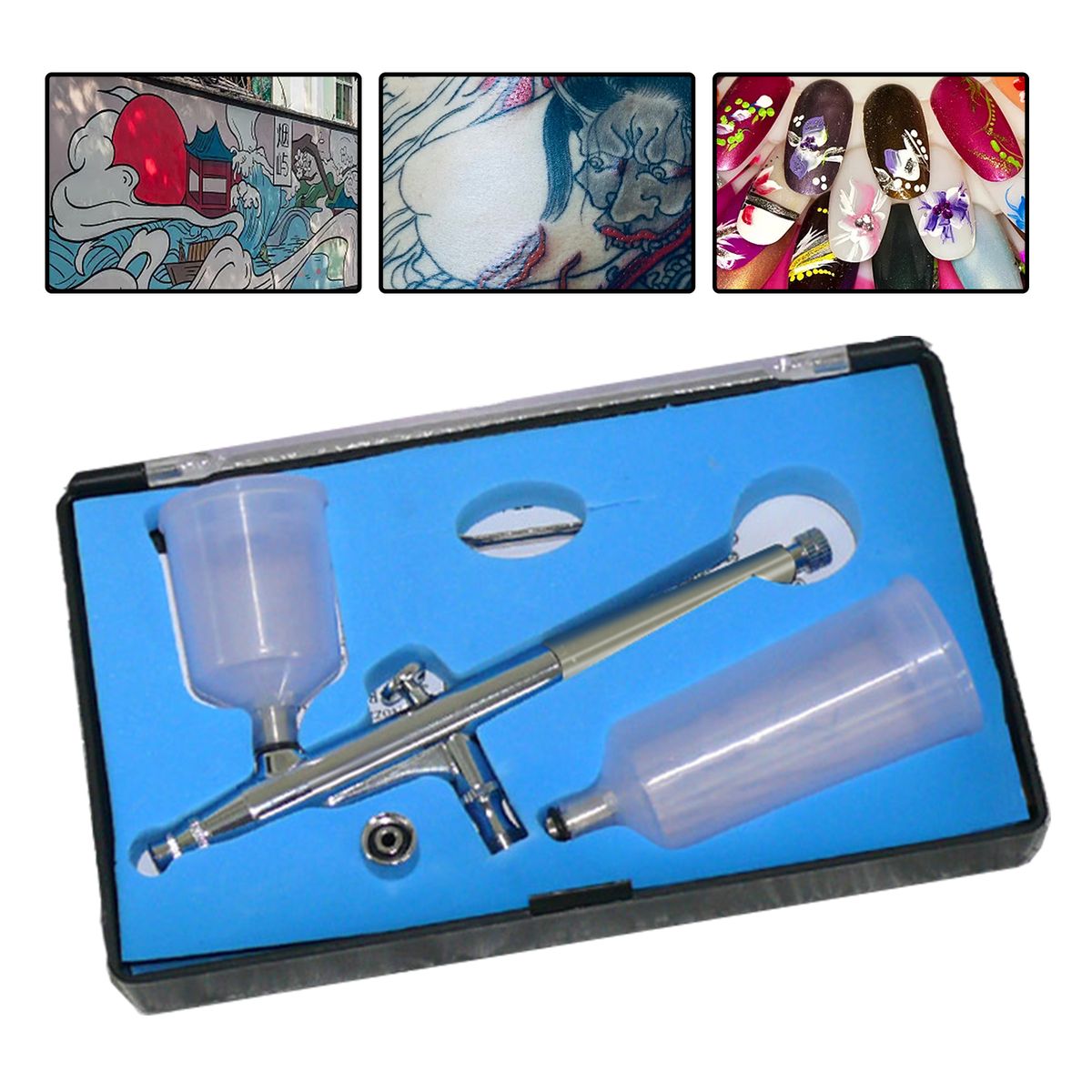 Multi-purpose air pump airbrush.Gravity-feed fluid delivery design.The is broad, accurate and durable, portable and easy to use.Made of high-quality precision parts, the airbrush can work efficiently while providing accurate atomization and control.Can be placed in your backpack or pocket. Portable airbrush can be used for art painting, leather, model coloring, furniture repairing, etc.The airbrush is easy to refill and clean, simple and convenient.