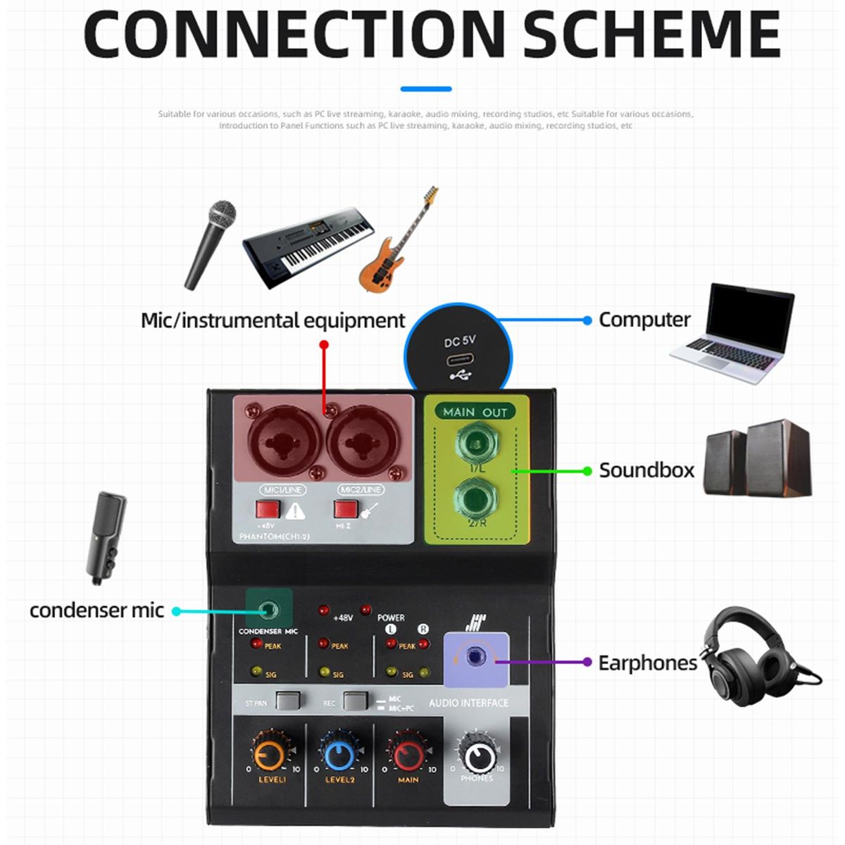 【Various occasions】: Mini Sound Board Console is suitable for many occasions, such as broadcast, , mixing, recording studio, and home, recording studio, and it is also very suitable for beginners.