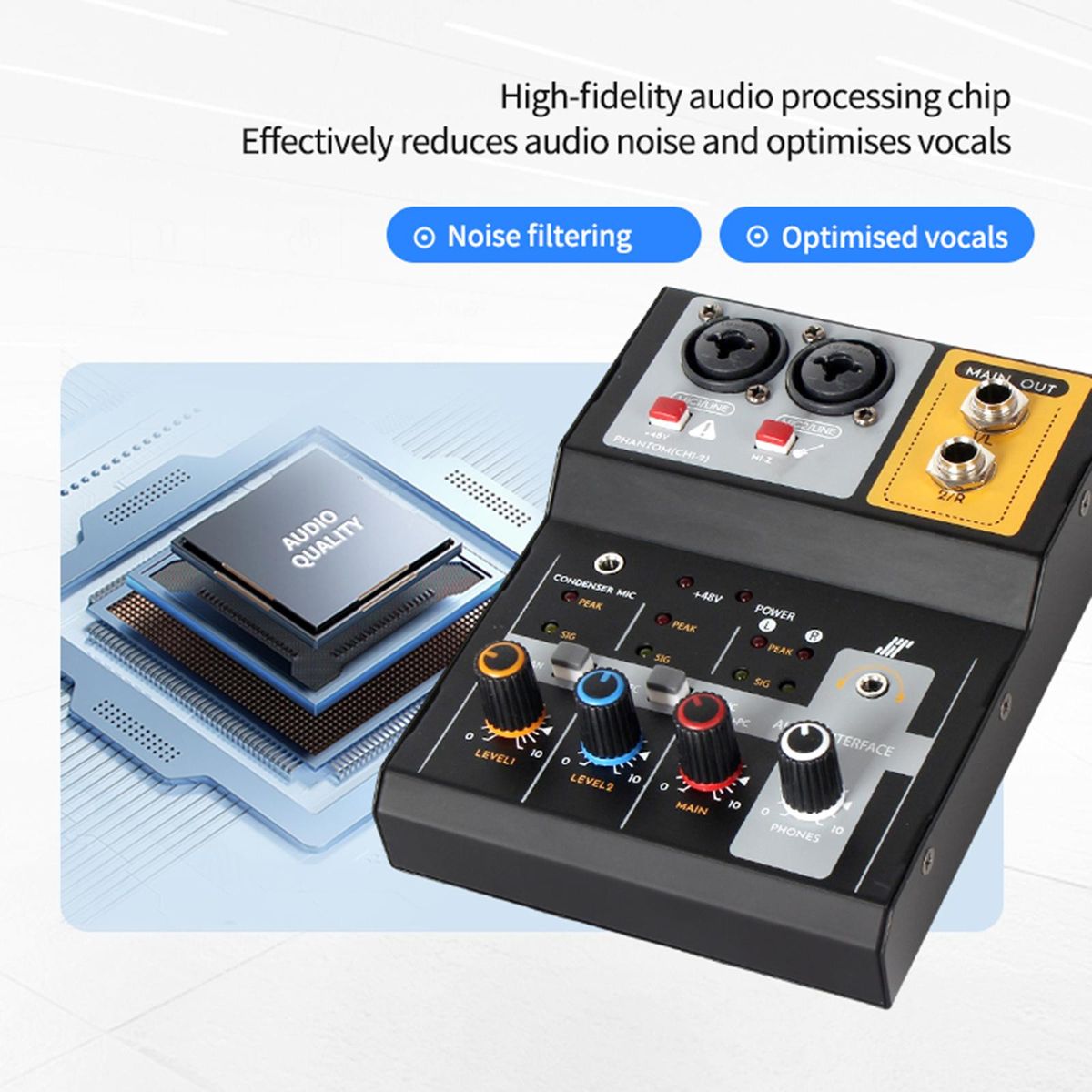 【Reverberation effect】: High quality Audio Sound Mixer can promote audio processing, which can effectively decrease audio noise and make the voice clearer and clearer.