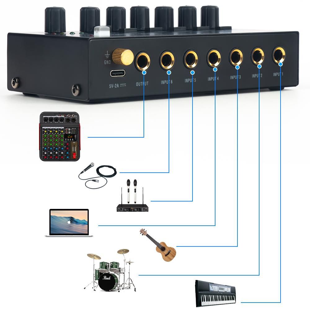 Buy Mini Audio Mixer Stereo Line Mixer for Sub-Mixing Ultra Low-Noise 6-Channel for Guitars Bass Keyboards or Stage Mixer Extension in Nigeria