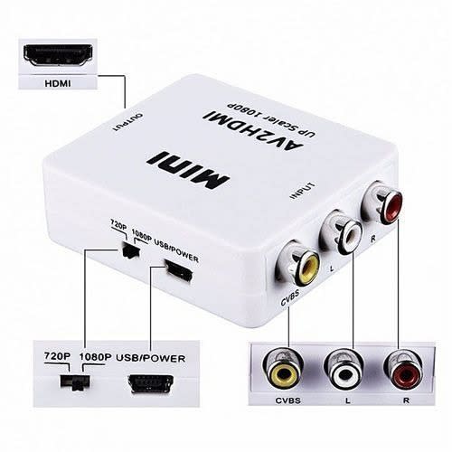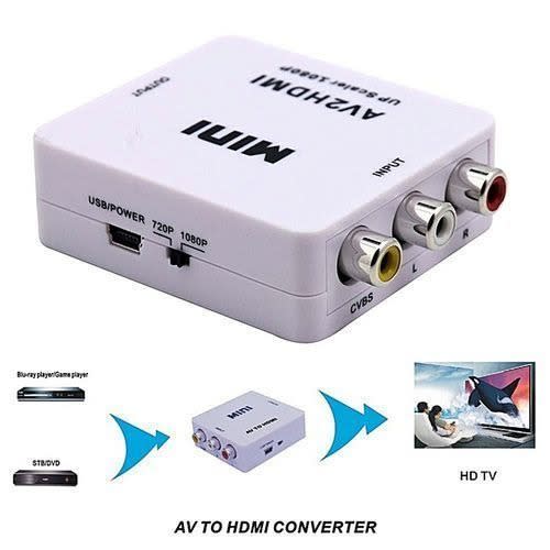 HDMI to AV Converter Box HDMI to RCA AV/CVSB L/R 1080P Video HDMI2AV Converter Support NTSC PAL Output HDMI to AV Adapter This HDMI to composite A/V converter will give a standard Y/R/W RCA connection from any HDMI signal. Ideal for feeding a set top box or media device into an existing A/V distribution system for clubs or business, it is also useful for situations where you have existing A/V cables and no need to upgrade to a full HDMI signal path. Power supply included (USB cable). Features:new and high quality.Input: HDMI Type A femaleOutput : RCA Yellow/Red/White.HDMI input format: 480p / 576p / 720p / 1080i / 1080pA/V output format: PAL 576i or NTSC 480i selectablePlug and play, no driver needed.Size: 6cm x 5.5cm x 2cmPackage Included: 1 x HDMI to AV Adapter1 x USB Charge Cable1 x User Manual.