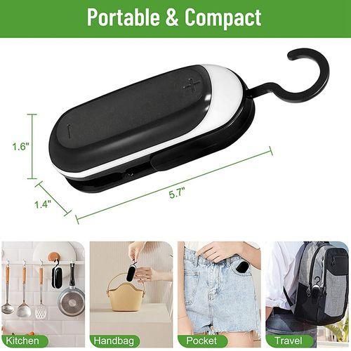 [Portable & Compact]:5inch x 1.4inch x 1.6inch.The design of mini size allows you to carry it anywhere you need. When you are fishing, camping, picnic and traveling, it's a excellent choice to keep your lunches or camping dinner fresh and delicious.This vacuum sealer is a very practical accessory for home or outdoor activities