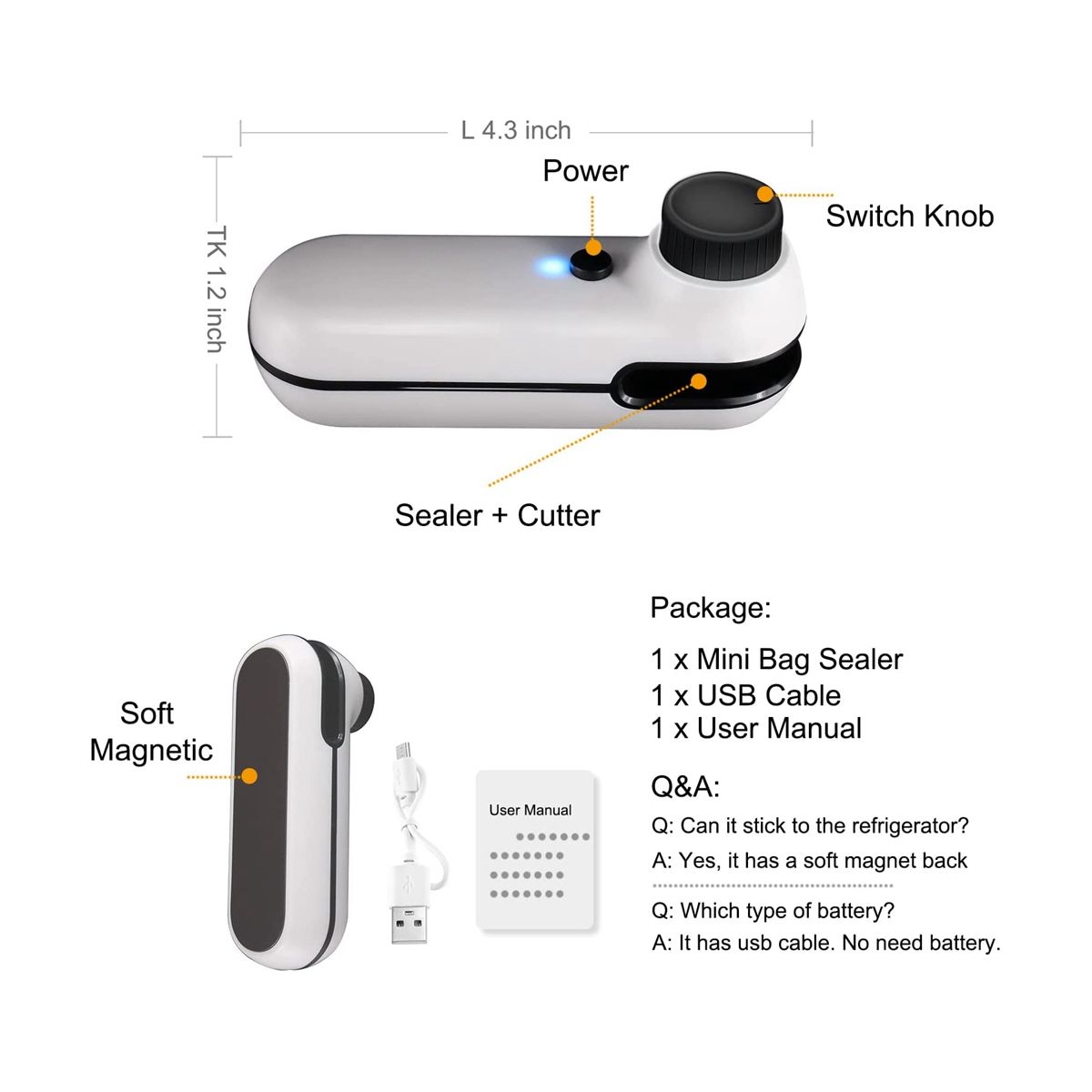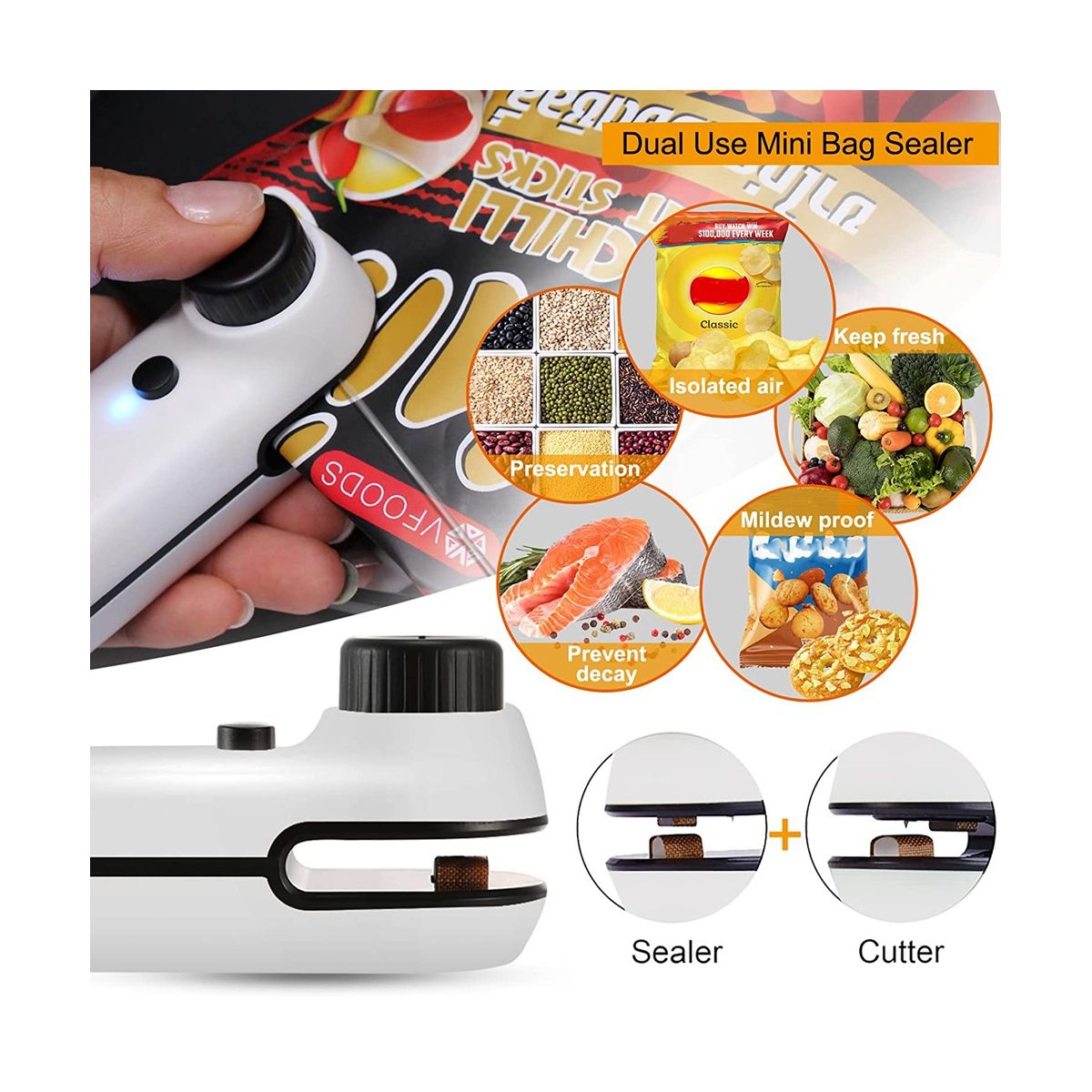 Two-in-one heat sealer: This mini bag sealer is very suitable for packaging and preventing food and snacks from becoming damp.