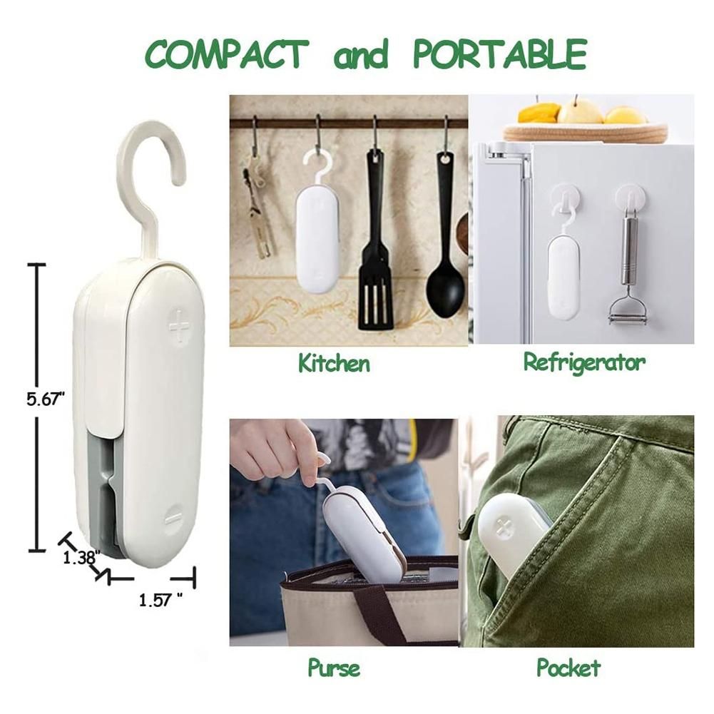[Portable and Convenient]This portable plastic sealer is compact size and easy to carry, can be easily store into your bag or pocket. Whether you go camping, picnic or the kitchen and living room, it's a good helper to cut and seal.