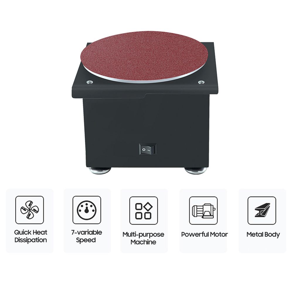 Made of selected material with reliable quality, this mini disc sander is suitable for metal processing, woodworking, DIY craft, sharpening kitchen knives and more.