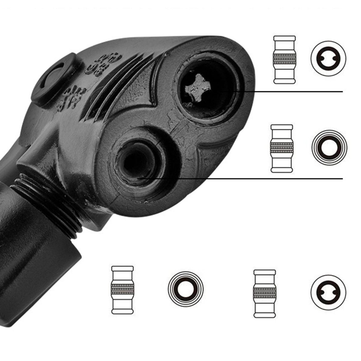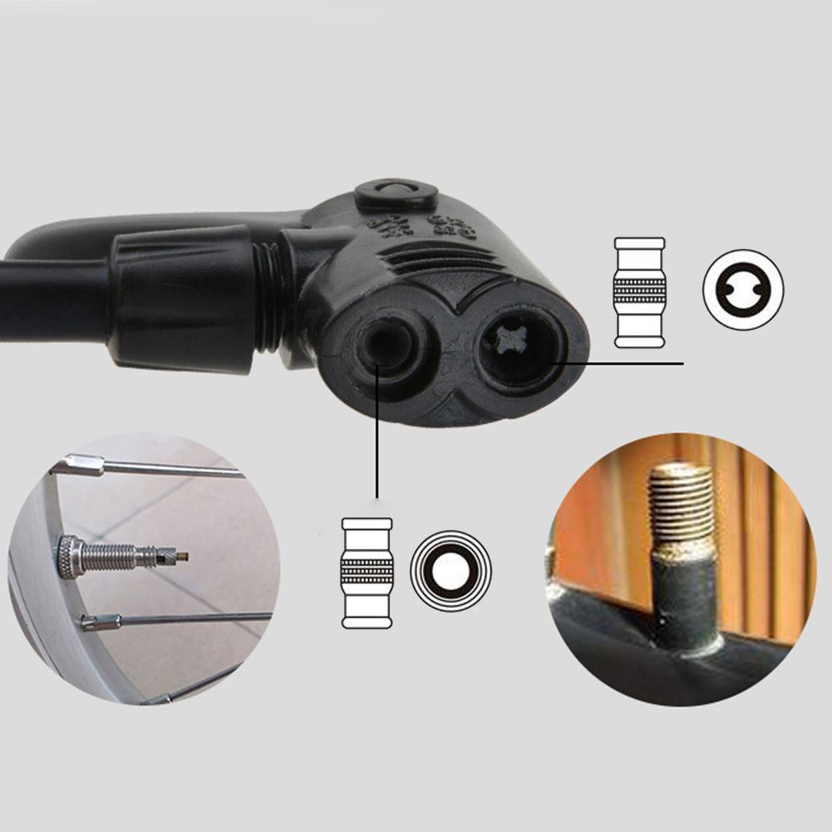 Our Bicycle Tire Inflator has a 2 in 1 US and French Spec Gas Nozzle Kit