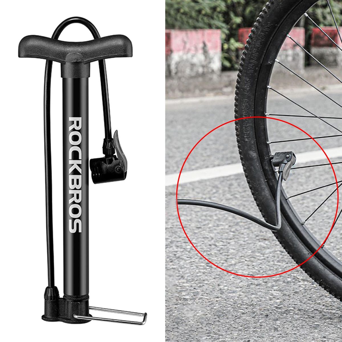 Maximum 120 PSI high pressure capacity, ergonomic handlebars, pure metal footrests for less effort to pumpOur Bicycle Tire Inflator has a 2 in 1 US and French Spec Gas Nozzle KitThe air pump is made of high-grade alloy, there are high-strength locking buckles on the air valve, the bottom anti-slip texture design, cold-resistant and heat-resistant air pipe, more worry-free to useStable, durable design makes bike pump easy to inflate your bike tires with less effort and timeFits Presta and Schrader valves and can inflate bicycles, electric cars, motorcycles, air mattresses, swim rings, basketballs, soccer balls, life buoys, inflatable beds and any inflatable ball toy