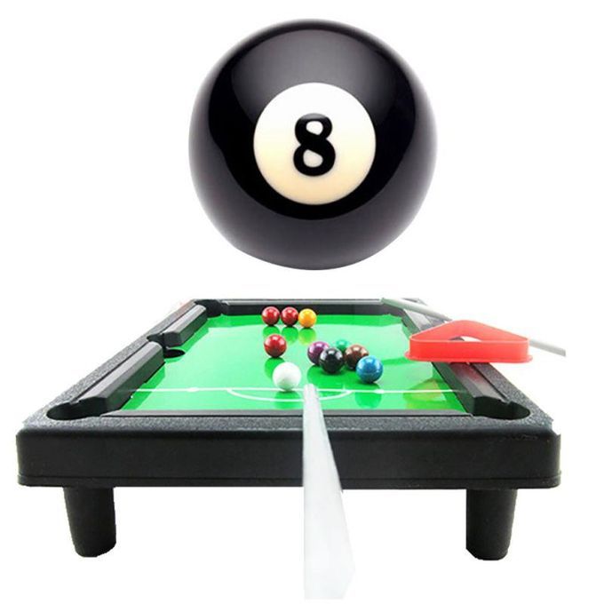 This is a mini toy of snooker which can be used on the table both indoors and outdoors.