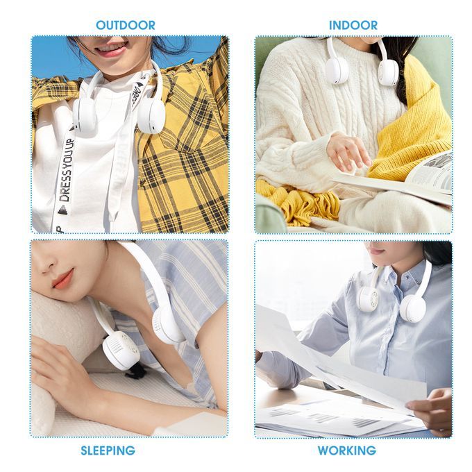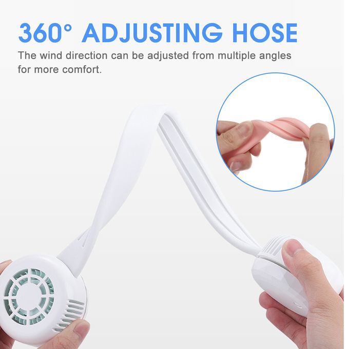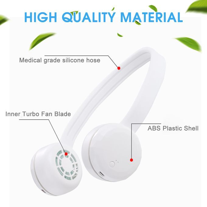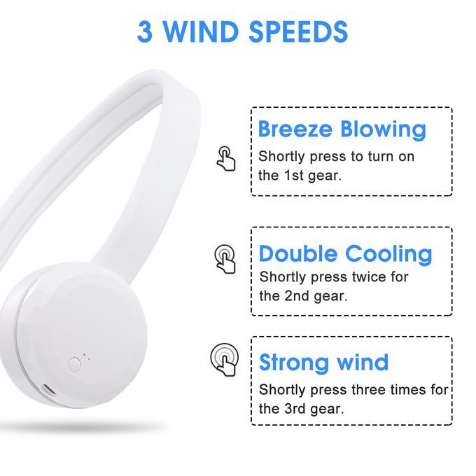 Features: -Three hundred and sixty ? Feel the wind in all directions. -Wind guide system of mountain forest ramp. -Surround wind system. -Double turbine 3-speed high wind gears. -Endurance up to 10 hours. -Silicone hose, easy to adjust wind direction, comfortable to wear. -The turbine mouth is dustproof, sweat proof and dust free.