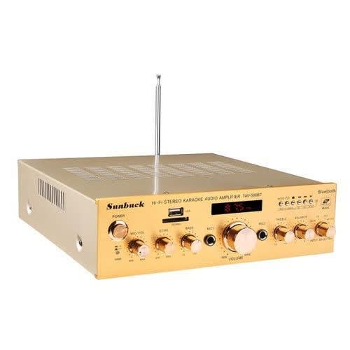 With Bluetooth, remote control, USB SD Jack, FM Radio, Karaoke with reverb, can connect 7 speakers + 1 active subwoofer.