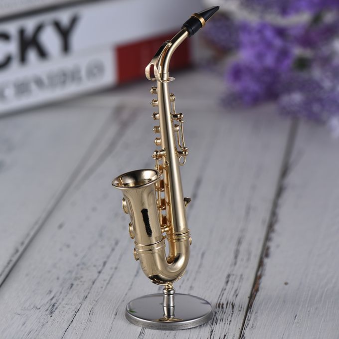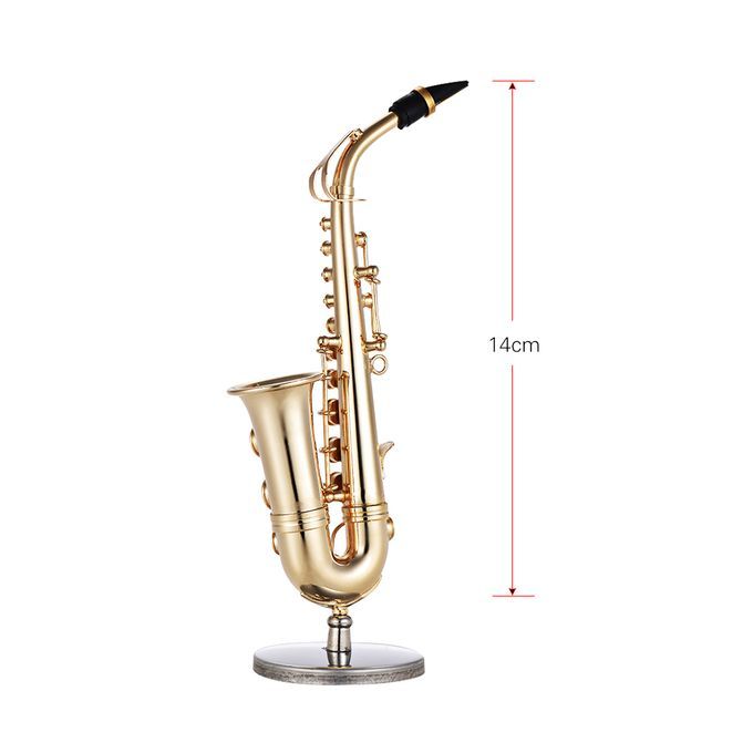 Mini Brass Alto Saxophone Sax Model Exquisite Desktop Musical Instrument Decoration Ornaments Musical Gift with Delicate Box