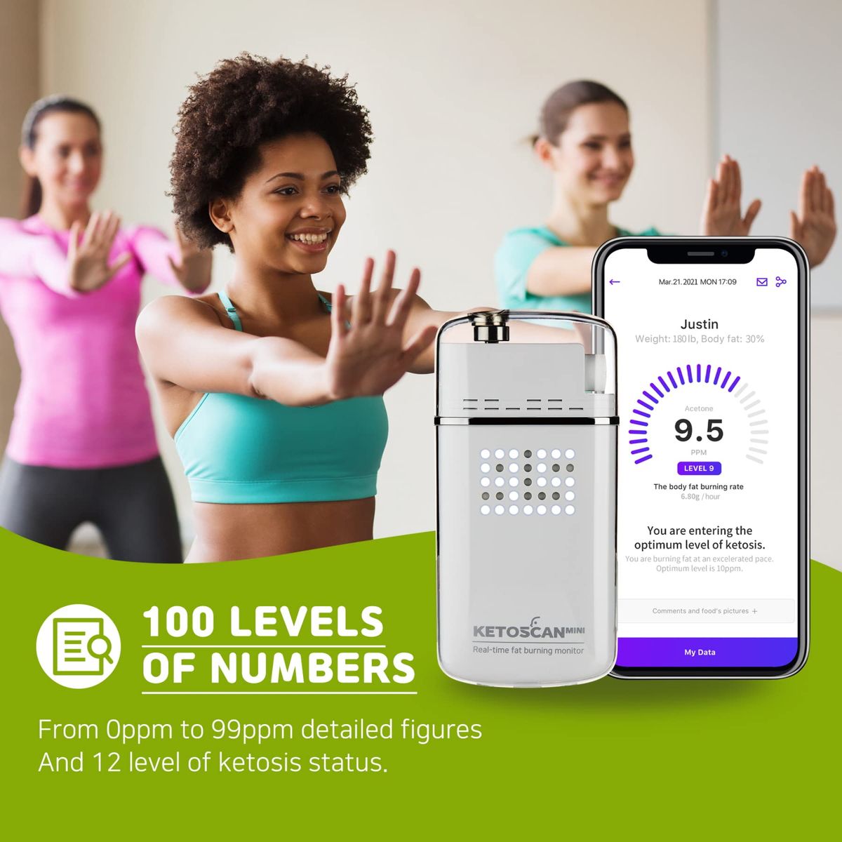 CALCULATE BODY FAT BURNING RATE: With the result you can determine your body fat burning rate as well as your optimal ketosis state. It will help you plan your nutrition and fitness regime.