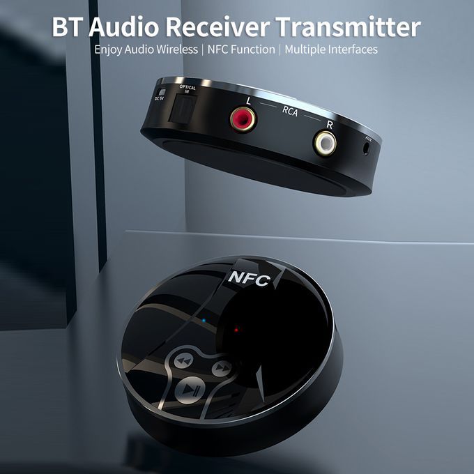 Mini BT Audio 2-in-1 BT Audio Adapter with NFC Function SPDIF/RCA/AUX Ports for Home/Car Stereo/PC/Game Console, Black