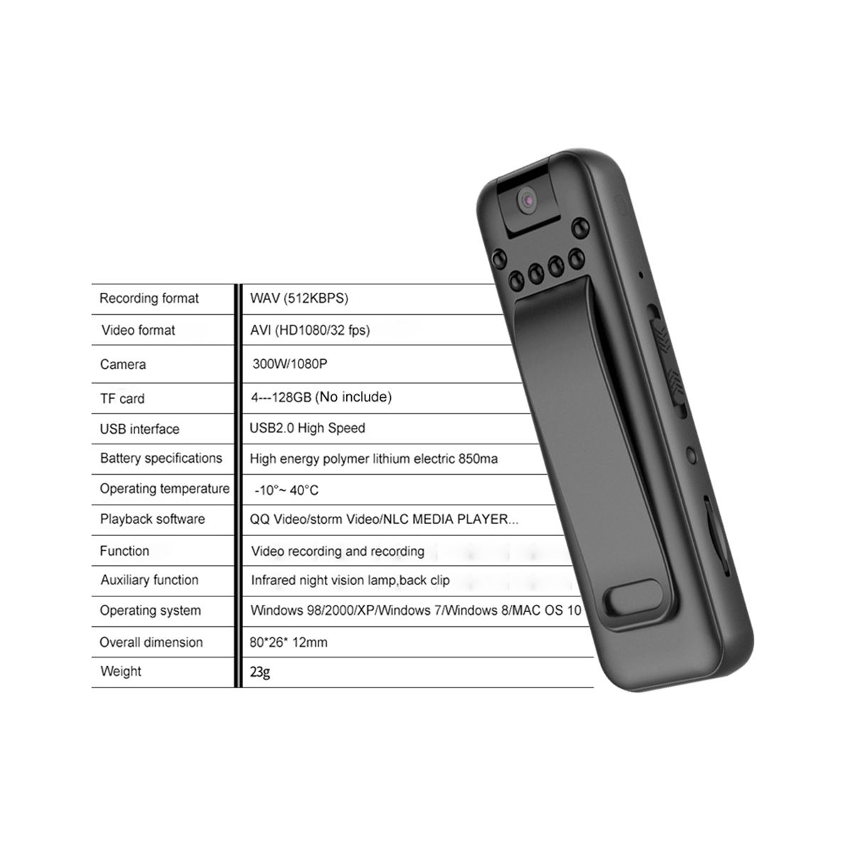 1 x Mini Camerano memory card