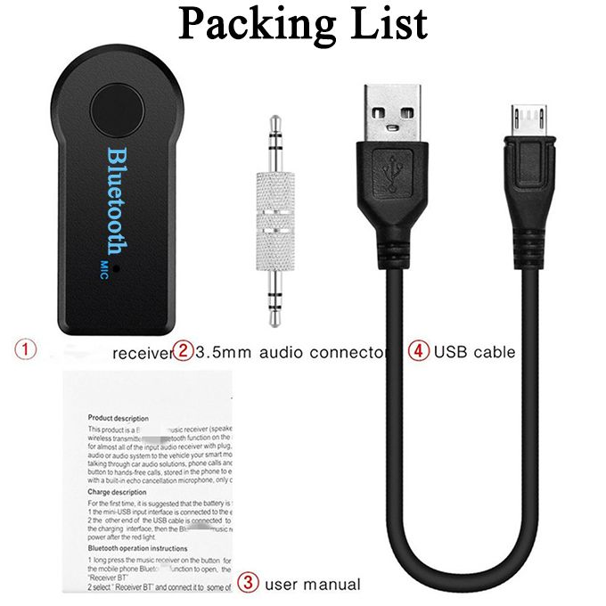 Package Included: 1 x Bluetooth Music Receiver Built-in Mic 1 x Micro USB Power Cable 1 x 3.5mm Stereo Inlet Socket 3.5mm Wireless Bluetooth Home Theater Car Aux Audio Receiver AdapterCar Bluethoot Receiver. Bluetooth Car Kit AuxMini Car Bluetooth Receiver,Wireless Receiver Aux Receiver Adapter,Hands-Free Car Kits Bluetooth Audio Jack ReceiverMini Car Bluetooth Receiver,Wireless Aux Receiver Adapter