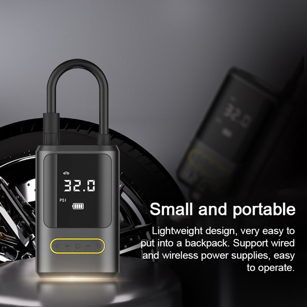 Features:Portable wireless air pump, LED digital display, accurate pressure measurement, timely and intuitive understanding of tire pressure status, and ensure travel safety.
