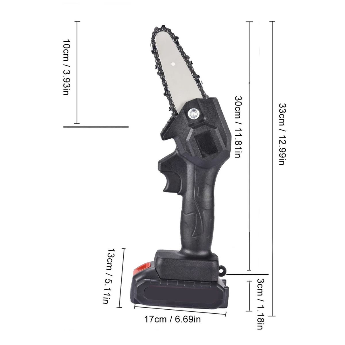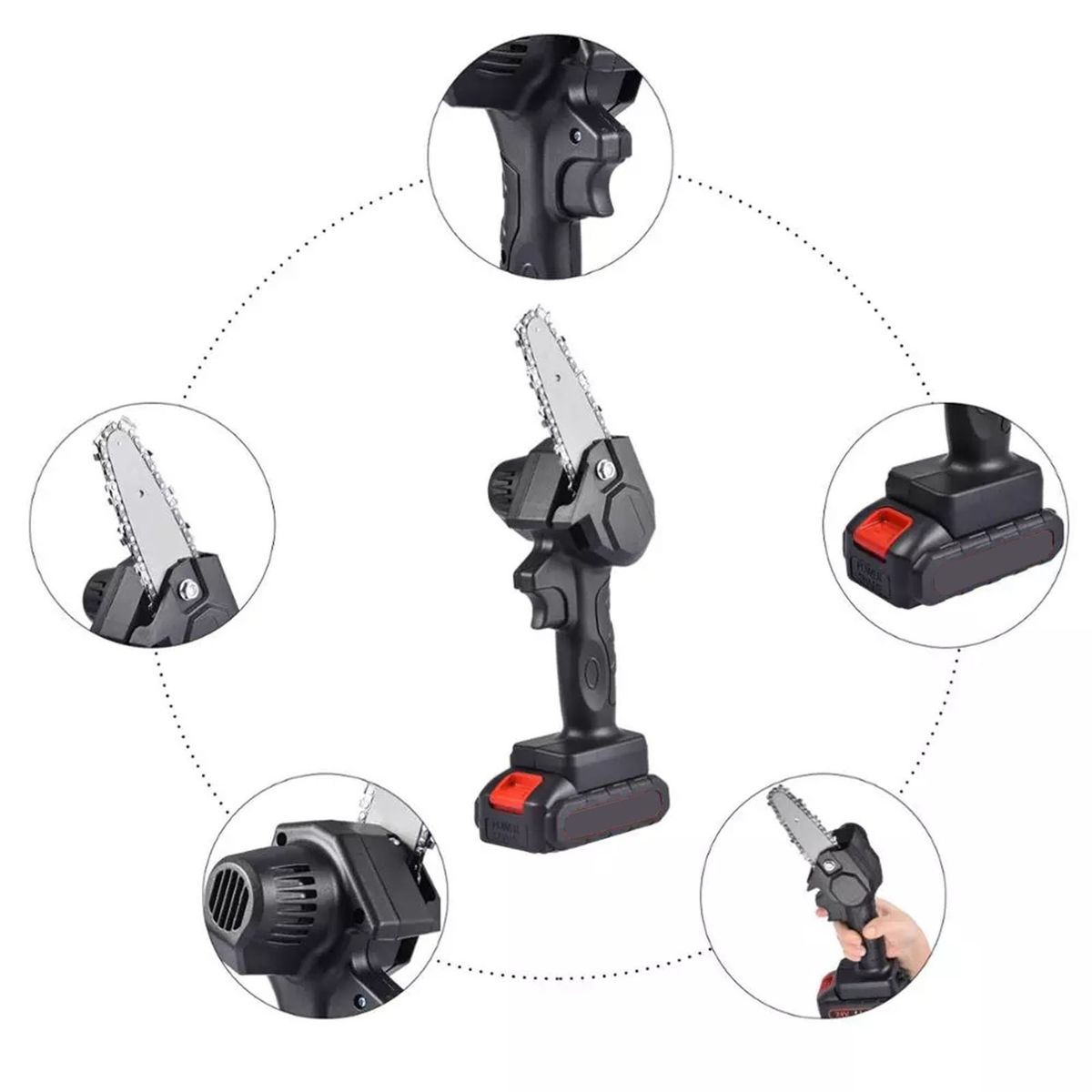 One Hand Using: This chainsaw with compact size and light weight which is great for single hand use, and suit for long time continuous working without fatigue.