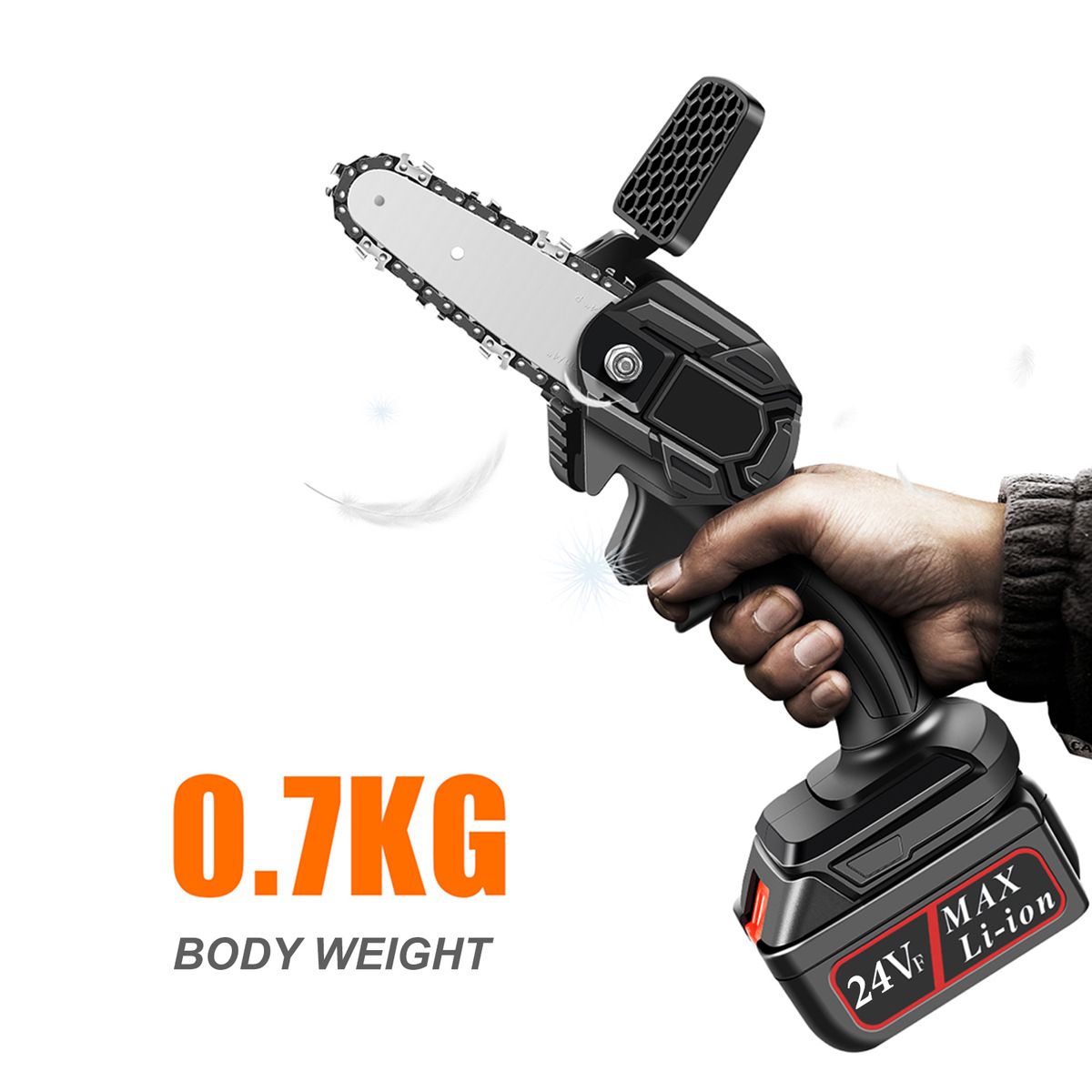 [Useful]This cordless chain saw adopts a high-quality guide chain that has undergone a deep quenching process that ensures smooth cutting.