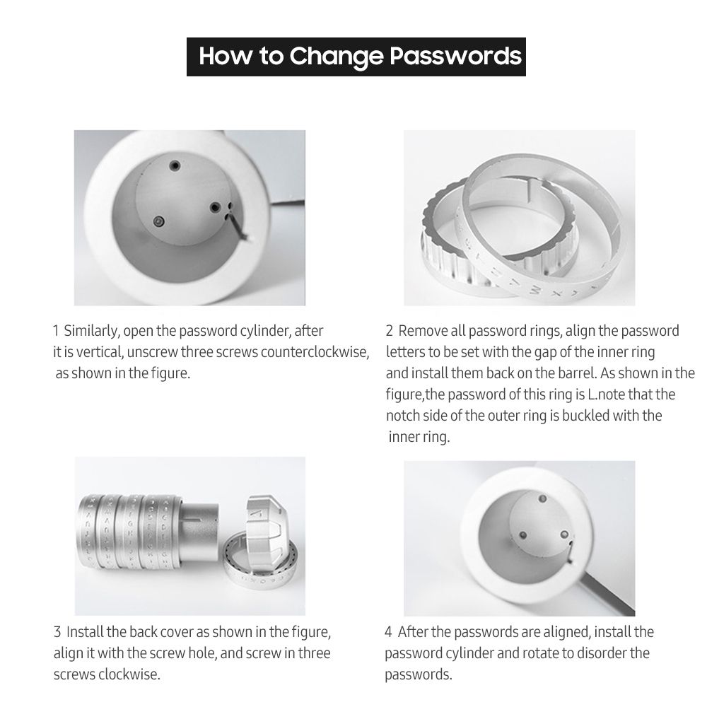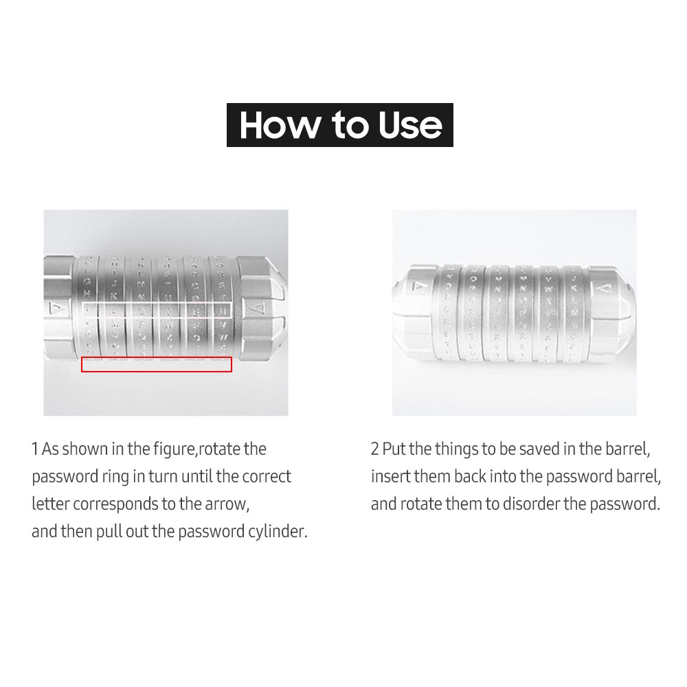 It opens with password you set, and you can change the password at any time. Store your notes, poems, rings, necklace, keys or other valuables. The uses of this Cryptex are limited only by your imagination, perfect for sending someone the most special gift.