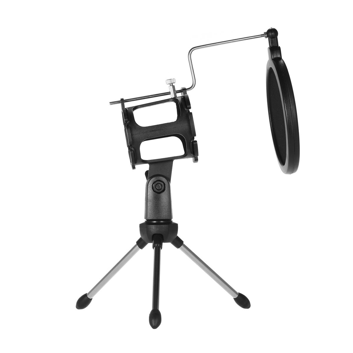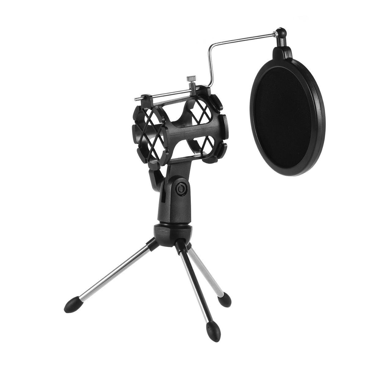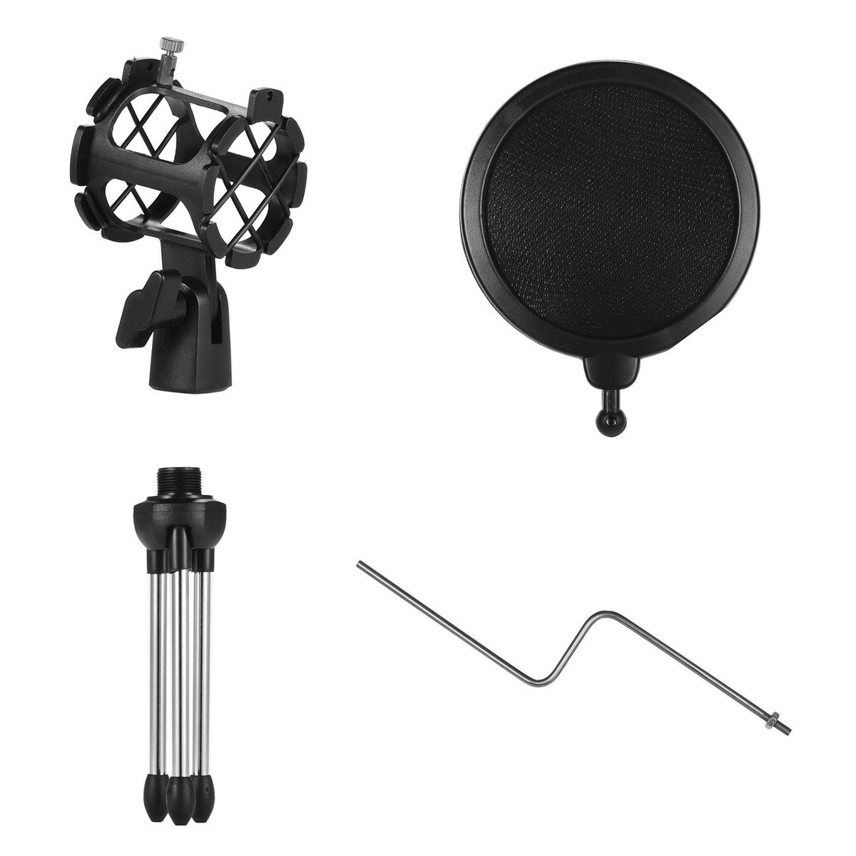Features:Desktop microphone tripod stand + microphone shock mount holder + microphone pop filter kit.