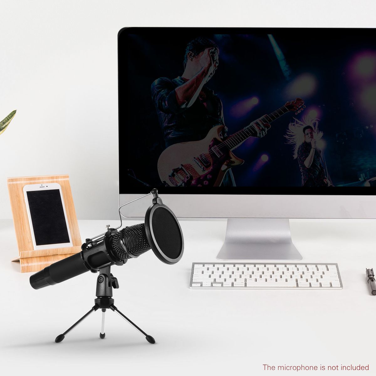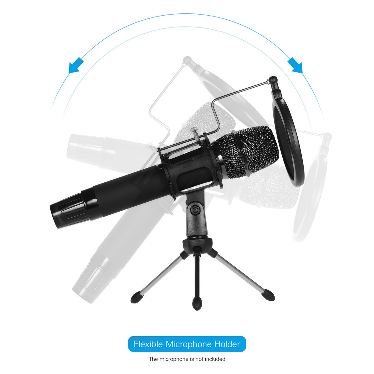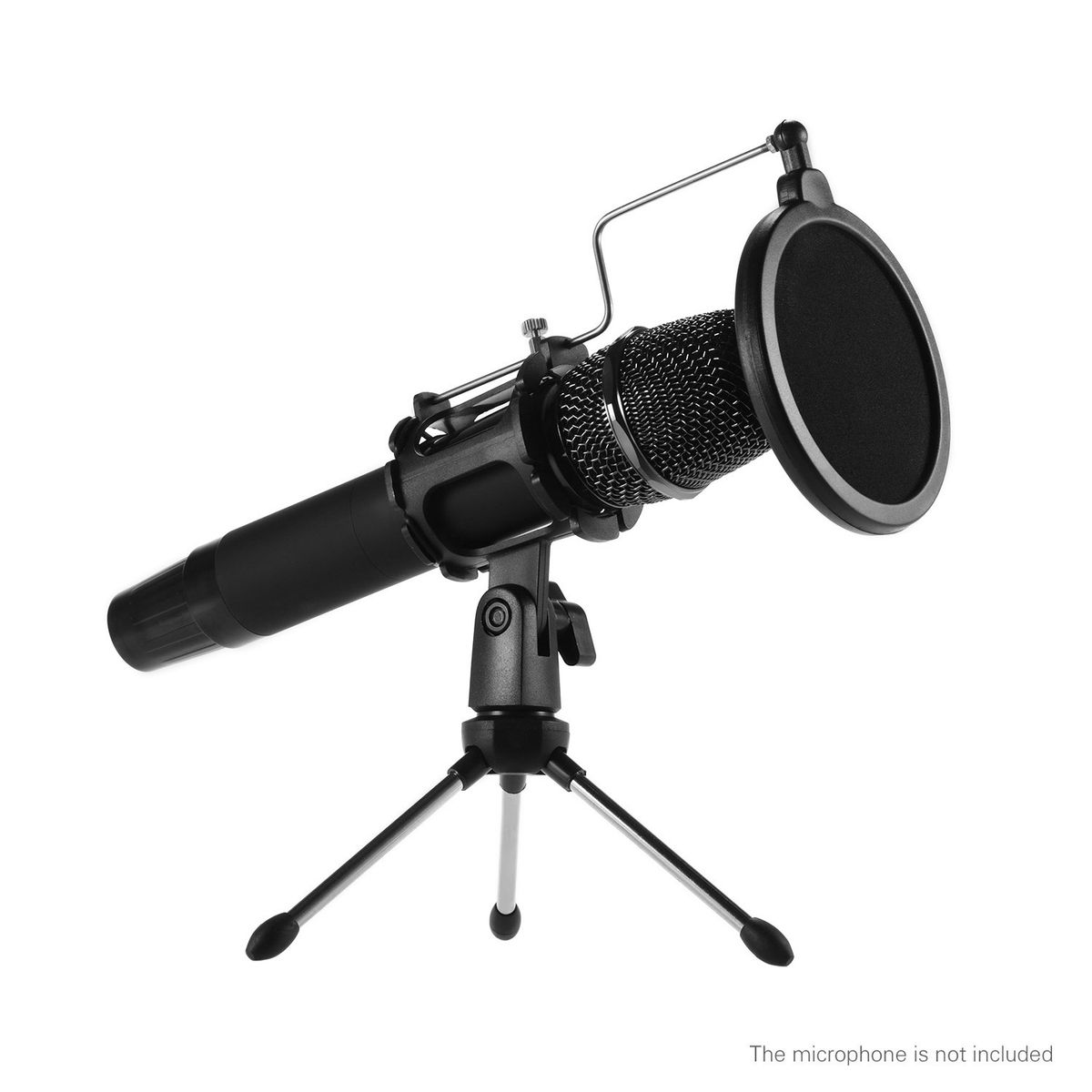 Features:Desktop microphone tripod stand + microphone shock mount holder + microphone pop filter kit.