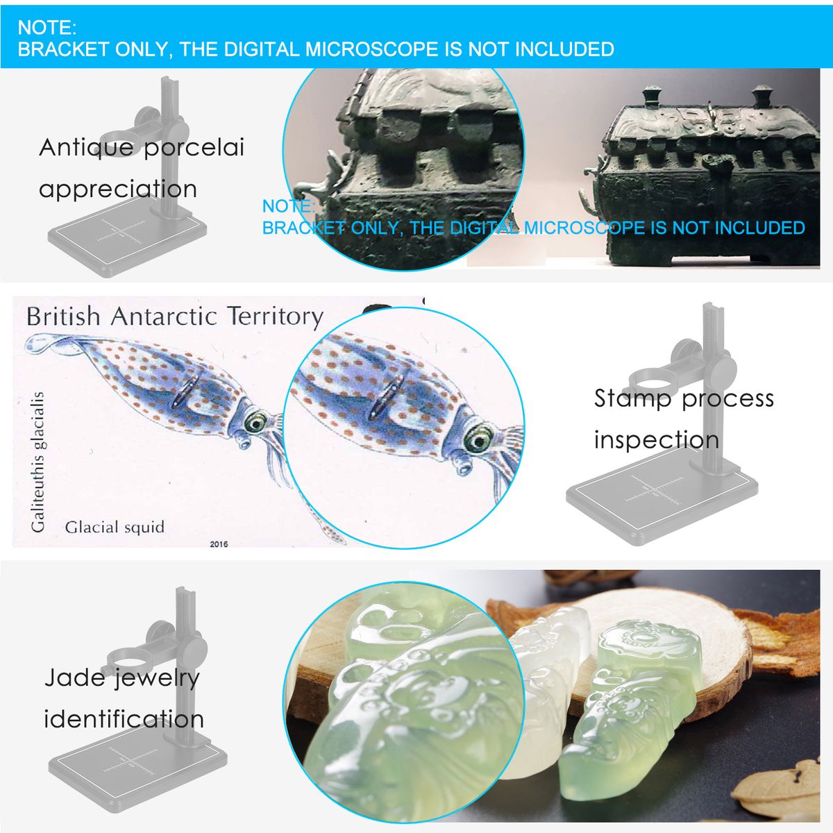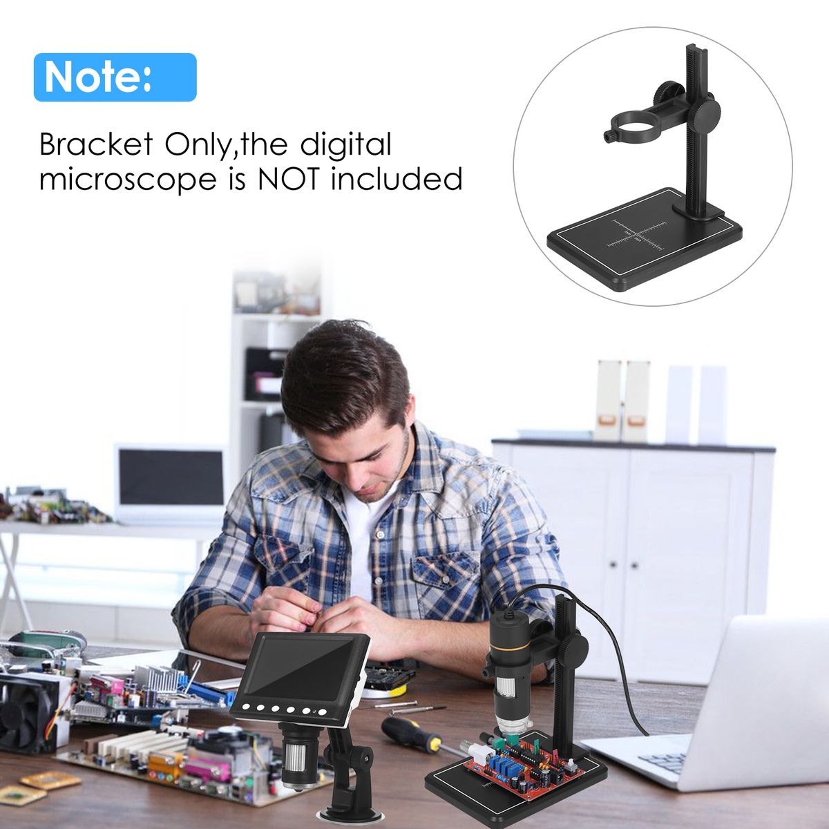 Auxiliary Stand for Electronic Microscope: with 1.26 quot; rounded clamp to hold the mini digital microscope.