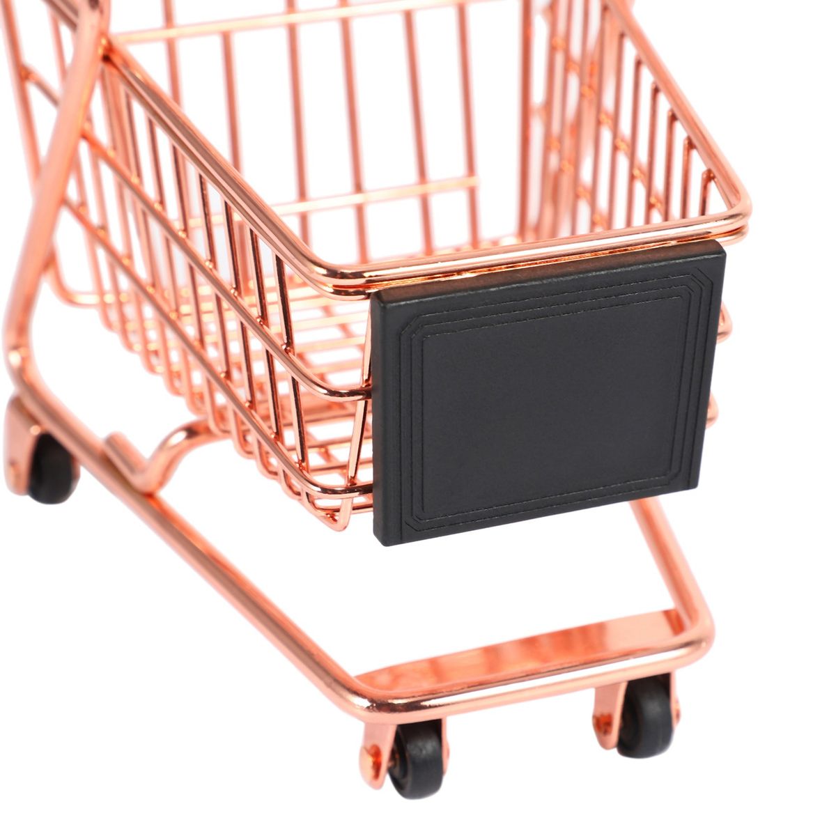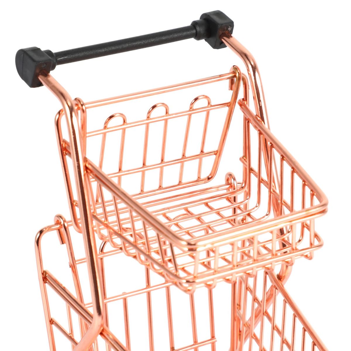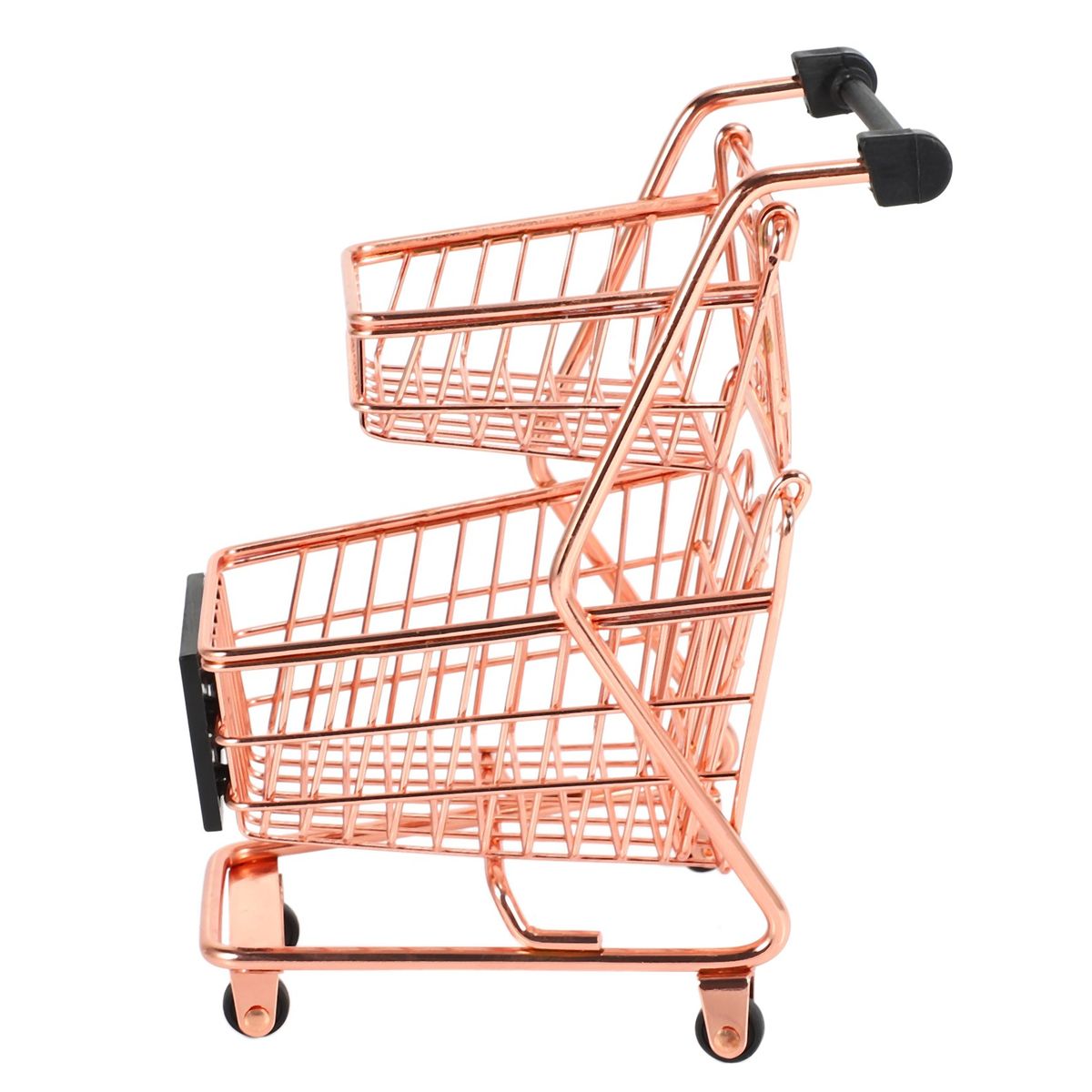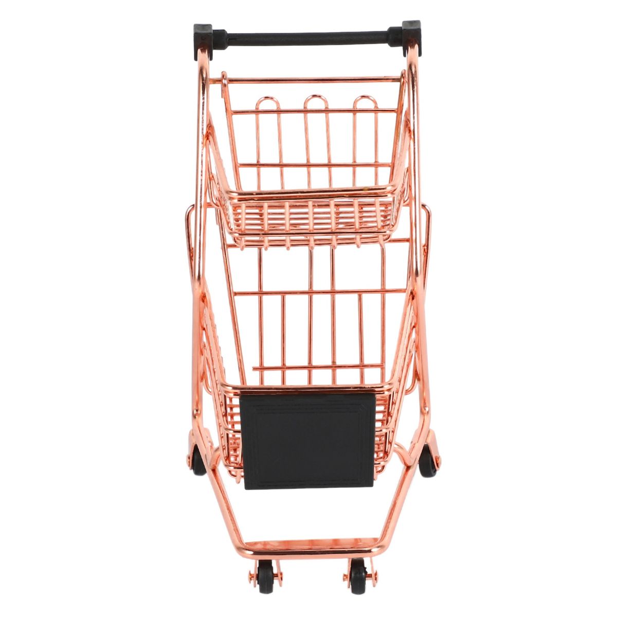 Creative Mini Double Shopping Cart Model Wrought Iron Supermarket Trolley Vogue Rose Gold Storage Basket Metal Storage Box