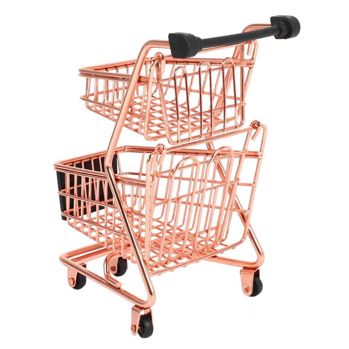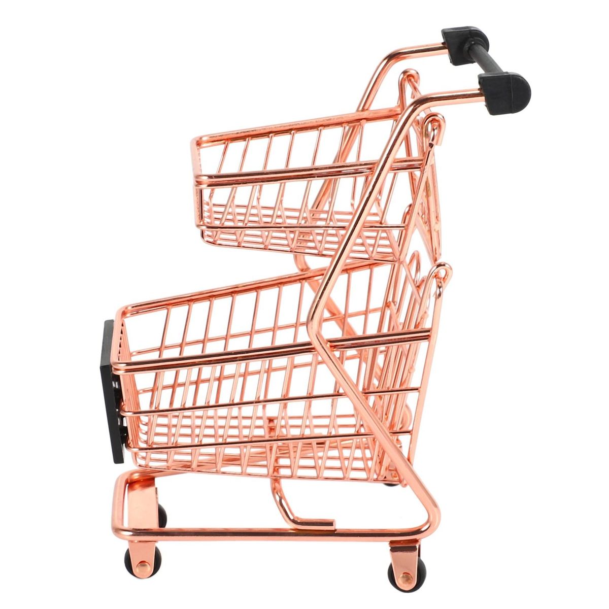 Mini Double Layers Shopping Cart Model Wrought RoseCreative Mini Double Shopping Cart Model Wrought Iron Supermarket Trolley Vogue Rose Gold Storage Basket Metal Storage Box
