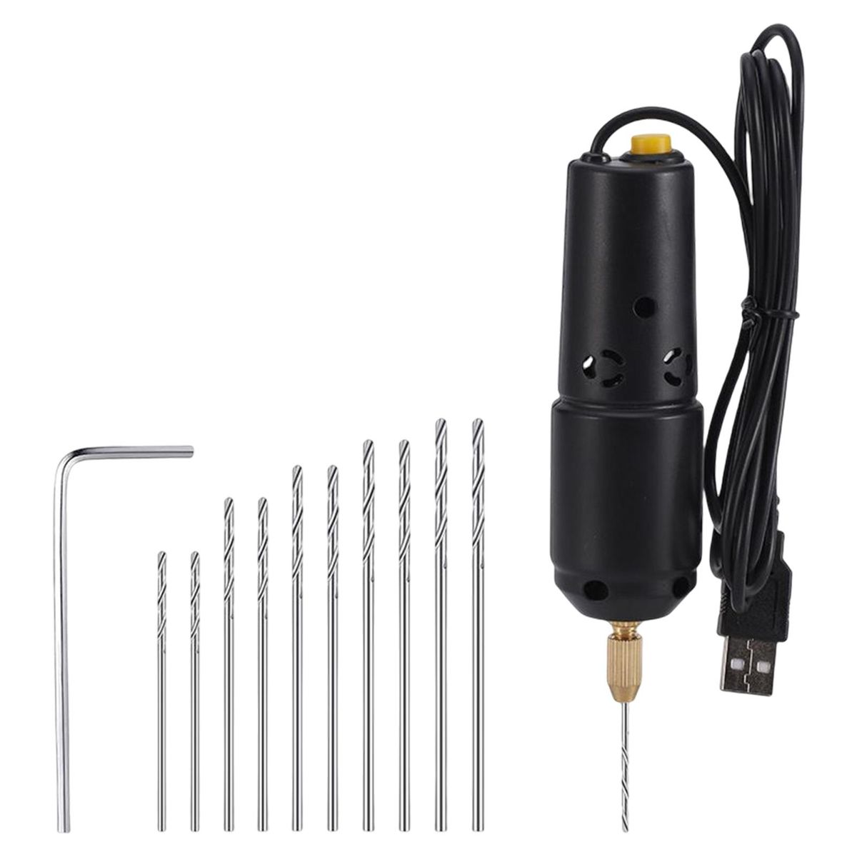 MATERIAL: Mini Electric Drill is made of high quality plastic and metal materials, the drill is hard and durable.USB POWERED: Drill is comfortable to hold. Powered by USB cable, easy to use. Comes with a USB cable switch for easy control.APPLICATION: Handheld mini electric drill tool is perfect for any hobby or precision work, mainly used for drilling jewelry, epoxy, beads, pearls, wood, plastic boards, paper sheets (within 10mm thickness).EASY TO USE: Once you have selected and installed the desired drill, just plug it in and turn the switch on, and you can drill holes for your crafts, or other DIY projects that require precise drilling.PORTABLE: The Jewelry Power Tool is small, lightweight and easy to carry.