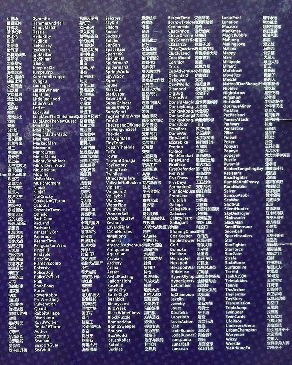 The pre installed games include: Super Mario Bros., Donkey Kong, The Legend of Zelda, PAC MAN, Dr. Mario, Mega Man, Final Fantasy, and dozens more