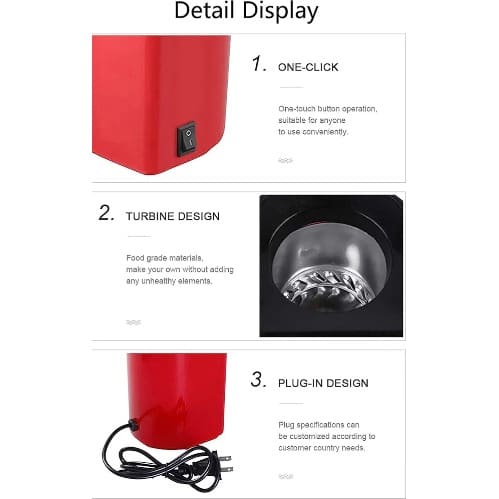 Home Popcorn Maker Fresh popcorn prepared in minutes Pops with air instead of oil reduces fat and fewer calories Convenient on and off switch Easy to use and clean Unit makes up to 12 cups of popcorn approx.