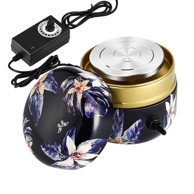 Mini turntable pottery wheel machine with a speed regulator, you can easily adjust the speed just by turning the button.