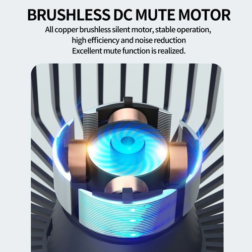 Exquisite body design, lightweight design, 360° free rotation, blowing breeze from any direction, suitable for desktop, travel, office and family room. Selected brushless motor, with 5 large wind blades, after repeated testing and adjustment, achieves strong wind while maintaining low noise.