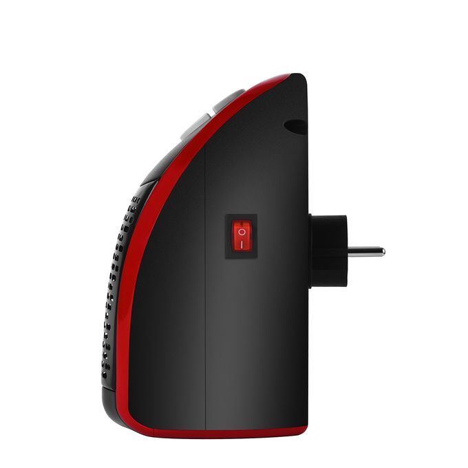 Stay-cool plastic housing protects a safe, ceramic heating element.