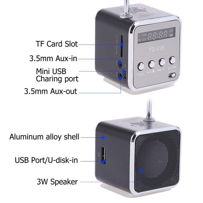 Built-in LINE IN audio input interface, can connect computer, mobile phone, MP3, for iPod and other audio, with antenna, radio, LED display lights, dazzling.