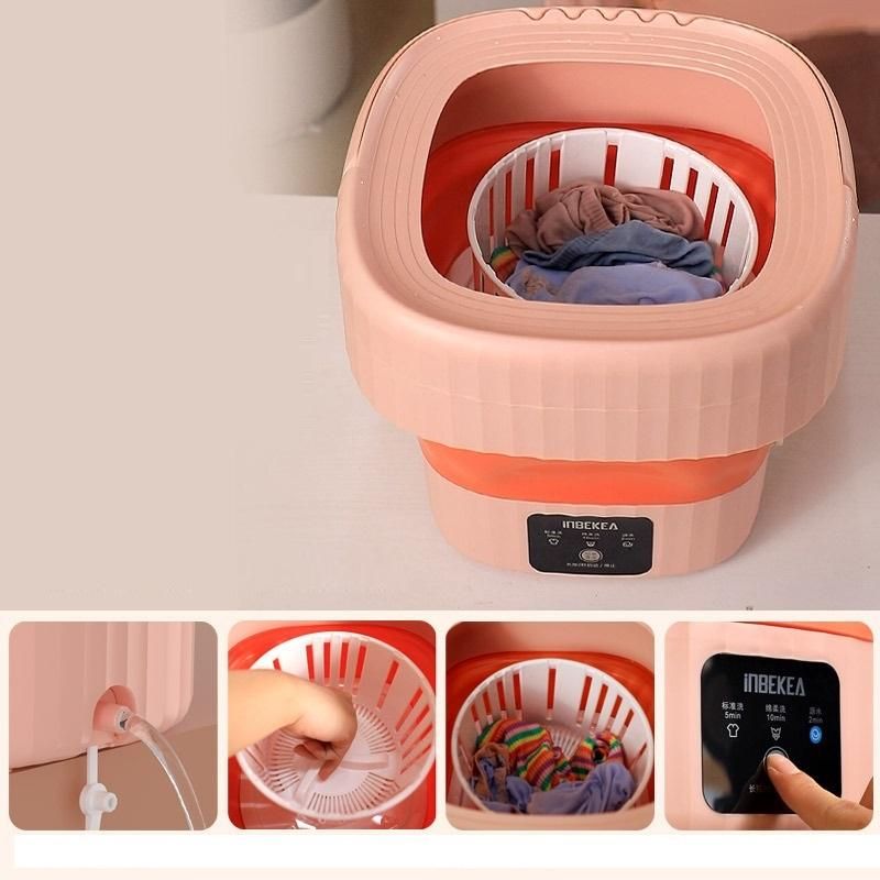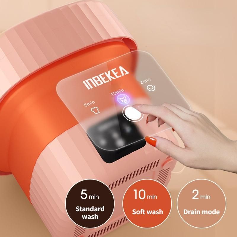 - The new style mini folding washing machine can be folded and put away freely. It can be stored in a small space without occupying any space. It specializes in washing underwear, underwear, socks and other close-to-body clothes. It can be equipped with a blue light bacteriostatic system, which is healthier for sterilization and sterilization. , Small and beautiful body, light weight, easy to carry, intelligent three-speed timing, to meet your different needs, equipped with a drain basket for draining water, a travel washing machine that can be carried.