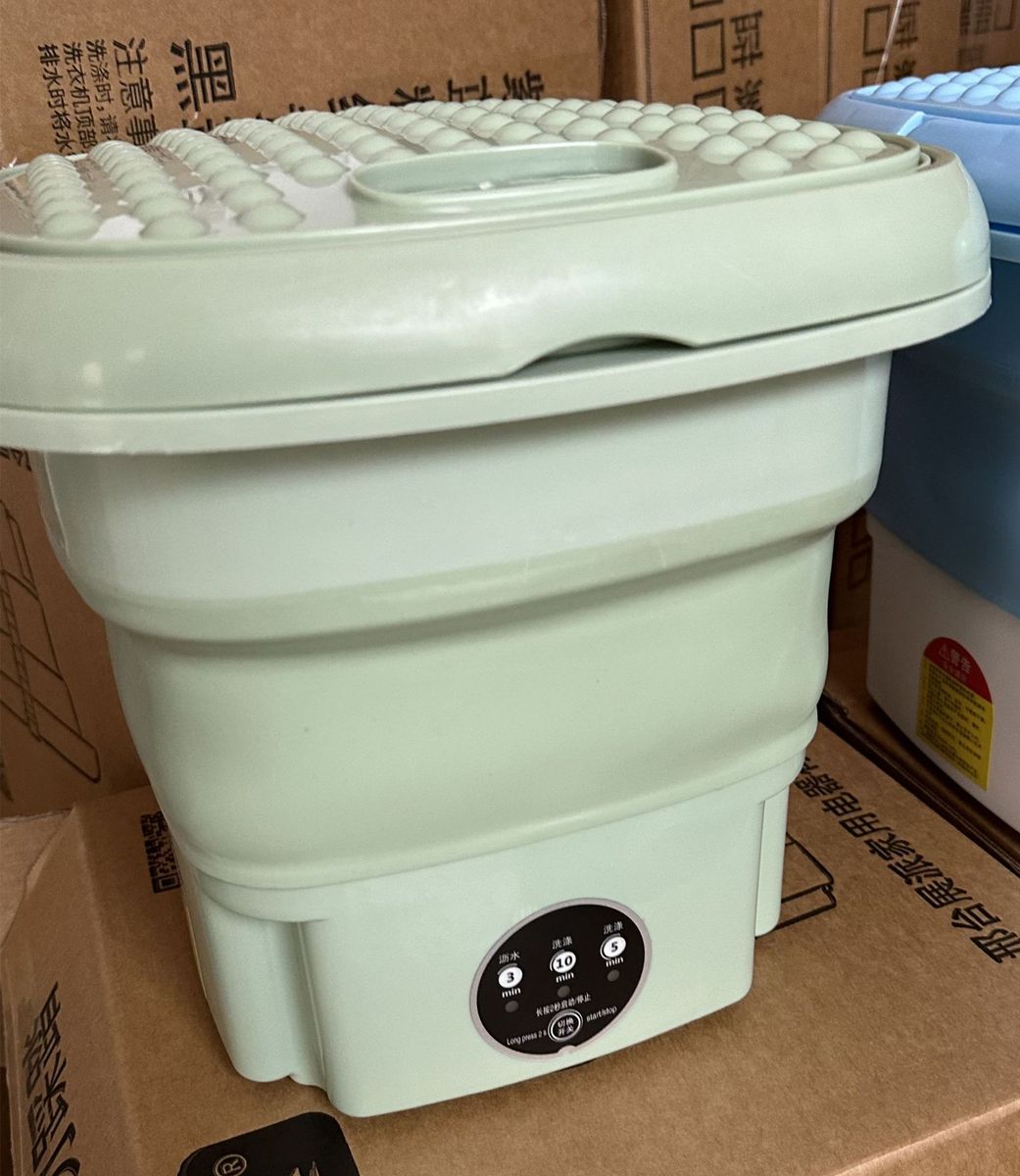 - It is the second washing machine in the home. It is not only small in size, but also can be freely folded, unfolded when in use, folded when not in use, and does not take up space. It can be placed in a small corner, and it is very convenient to use! It can be easily carried when going out, and can also be used in student dormitories and tourist accommodation.