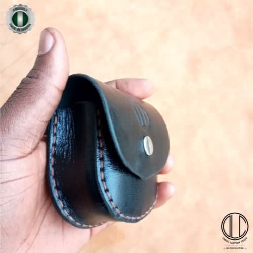 This Black Mini Leather Belt Pouch is patterned and handcrafted by OhepoLeatherCraft (OLC) using fine genuine Nigerian leather. It is a nice container for your airpod, wired ear phones, keys, lighter, cigerrete pack and other accessories that can fit perfectly in it.