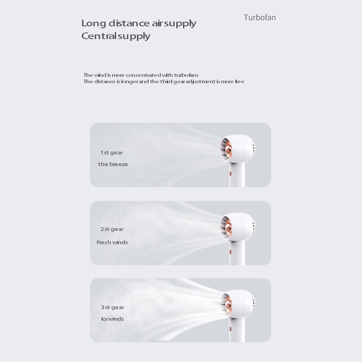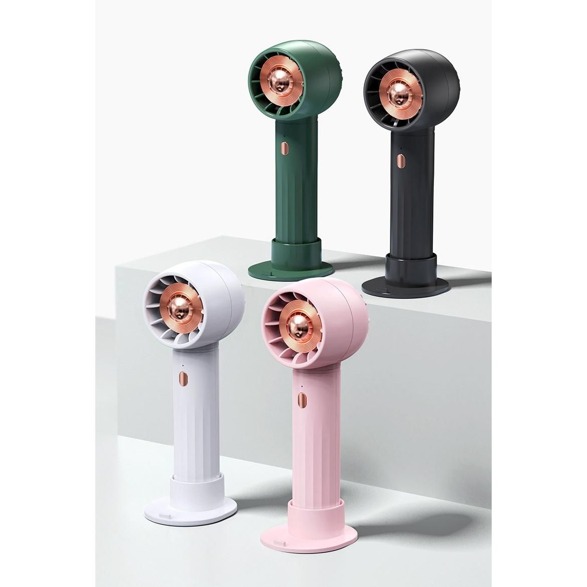 The turbo hand-held bladeless fan is made of ABS plastic for durability.