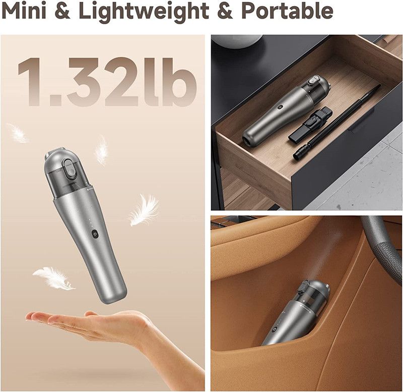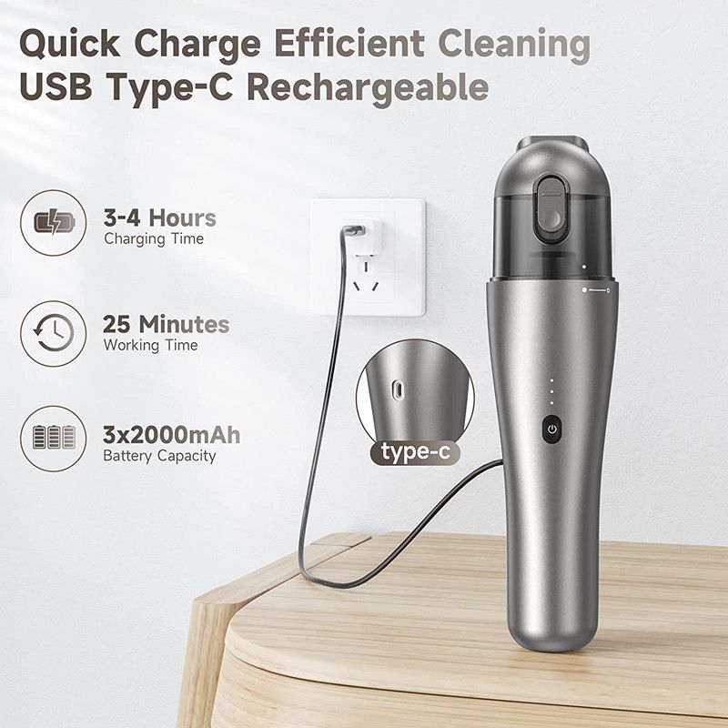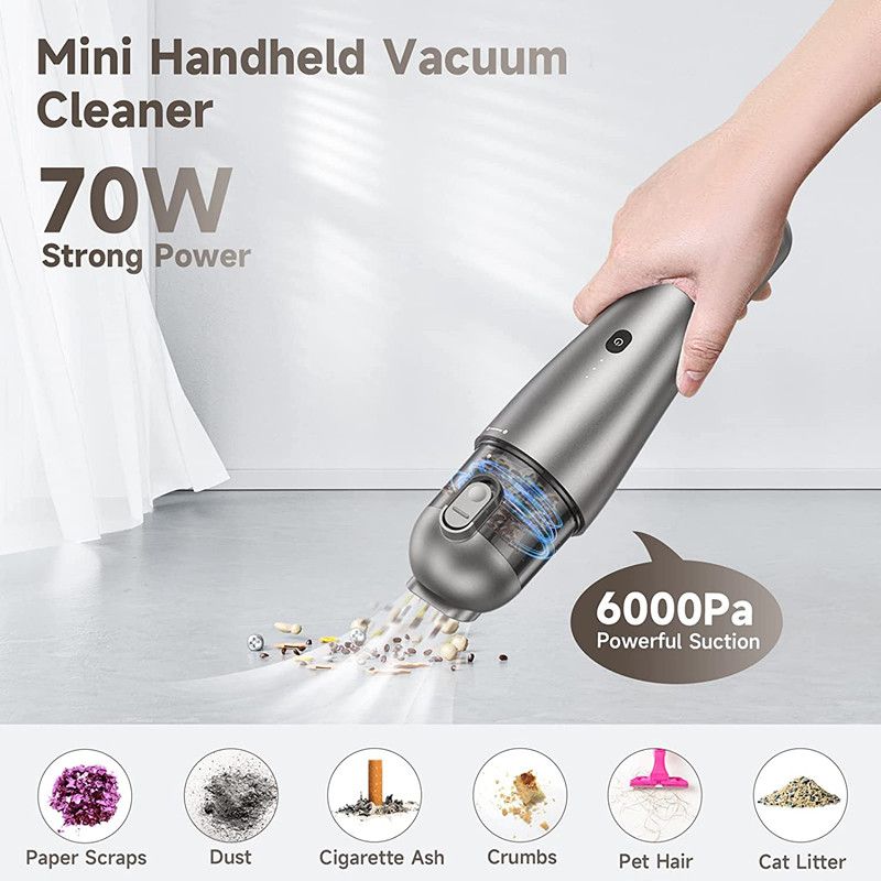This handheld vacuum cordless rechargeable cleaner boasts a powerful 6000pa suction.