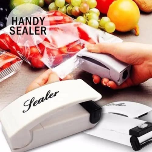Just place sealer at the edge of the bag, pull through and see it work like magic. Built-in safety bar prevents injury when not in use, inexpensive and easy way to quickly seal plastic bags and keep food (beverages, biscuit etc) airtight. Now moisture, mildew, rots, leaks need not affect your leftovers. Thanks to this sealing device, everything is buttoned up and remains fresh.This super sealer is ideal for travelling, boating, workshop, picnics, winter storage, cosmetics hobbies, and gardening. With a magnetic bottom, it easily attaches to metal surface gadgets in the home. It makes for a great gift and a must-have for every home. NOTE: Please take out the batteries when not in useHandheld mini airtight sealer machineEasy way to perfectly seal any bag airtight to keep your food fresh for a longer time. Adopts micro-thermal technology seals virtually any plastic bag quickly and easily such as PVC, PE, PP & PET bags3 seconds to heat up & seal plastic bags creates an airtight and watertight seal that locks stuff inside fresh safety cover built-in, just clip the bag opening and hold the sealerSlide across the opening and the bag is sealed.