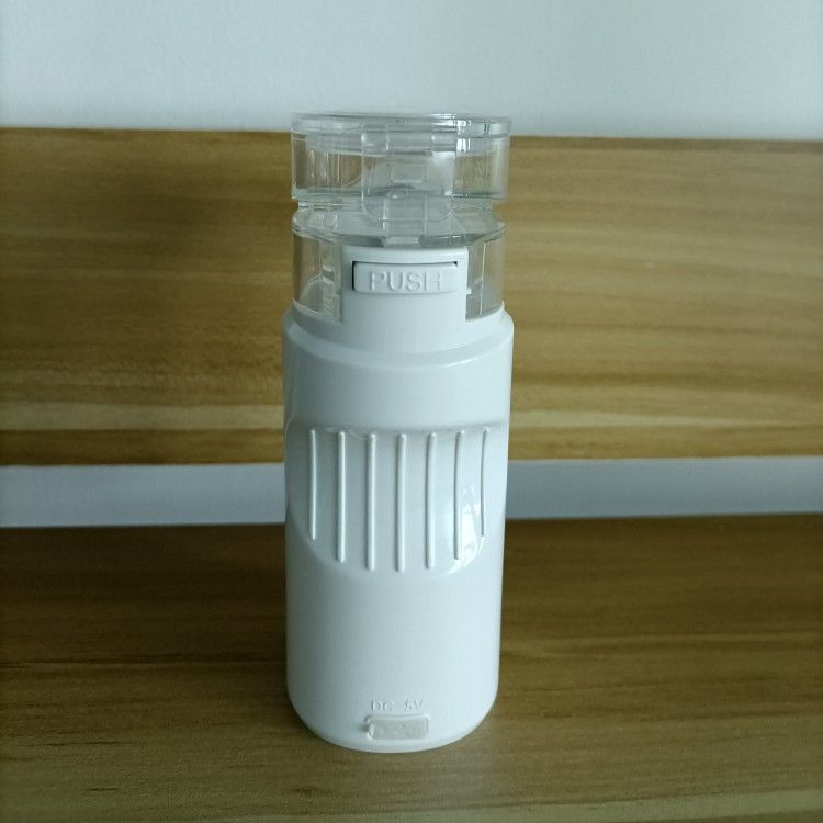 Product Name: Grid Atomizer Liquid residue: ≤0.5mL Atomization speed: ≥0.25ml/min Atomized particles: about ≤3.7μm Medicine cup capacity: minimum about 0.5mL, maximum 10mL Noise: ≤50dB (A) Working frequency: 110KHz±10% Power consumption: 2.0W Power configuration: DC5V/1000mA USB power cord or 2*1.5V (2 AA alkaline, product does not include battery) Material: ABS+PP