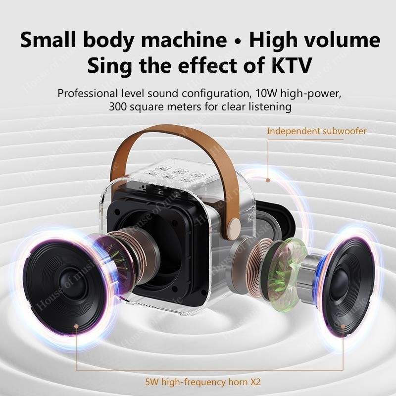 - With a professional-grade sound configuration and 10W high power, this mini home KTV Bluetooth speaker is capable of producing clear and loud sound that can fill up to 300 square meters.