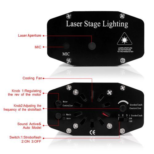 Material: AluminumQuantity: 1 pcsItem Color: Blue ,BlackMode: ON/OFF/Stroboflash, Music/Auto, Motor controller, Stroboflash controllerLaser Color: Red & greenRed Laser Wavelength: 650nm, power: 100mWGreen Laser Wavelength: 532nm, power: 50mWSecurity Level: CLASS IIIAInput: AC 110-240V, 50-60HzOutput: 5V, 1.5ASize: 10.8*9.3*5cm / 4.2*3.6*2"Net Weight: 0.29kg / 10.2oz