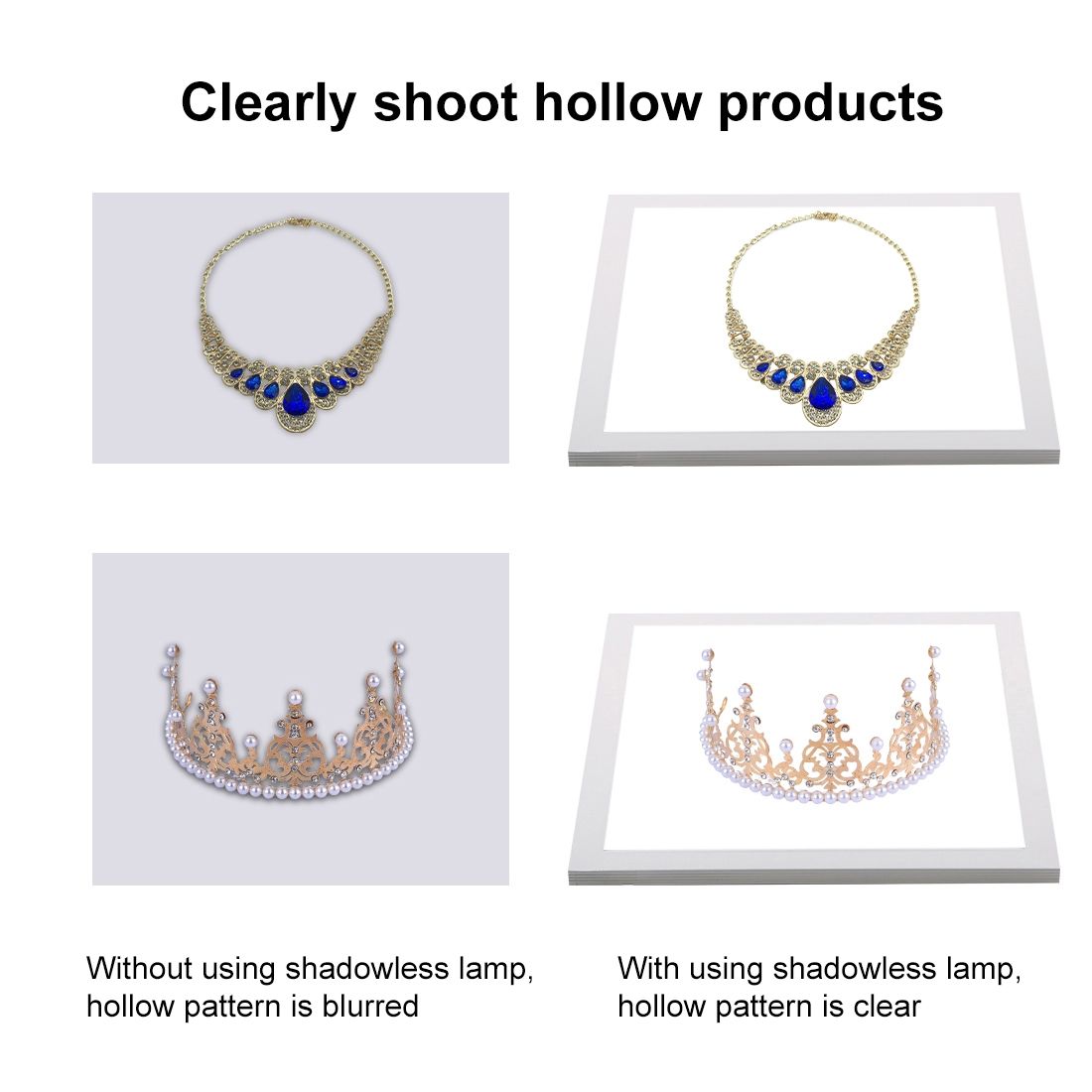 1. This shadowless light for photo booth light box eliminate photographing shadow problems, sharpen outline and edge of products and greatly reduce time consuming photo editing.