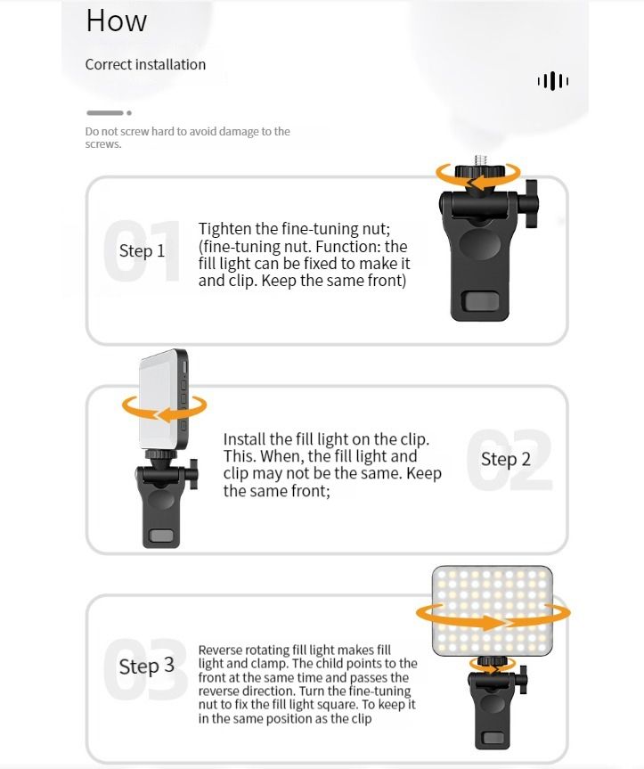 【A variety of light modes and brightness levels】 :Selfie lights have multiple light modes(3000K-6500K), which are provided to meet your various usage needs, the high CRI rating of 97+ allows you to be charming in any situation, such as makeup lighting, selfies, video recording, video conference, vlog show, live streaming. Led selfie light for phone built-in 80 LED lighting beads to improve the quality of night. The fill light is softer, brighter not dazzling, and can protect your eyes well.【2000mAh high-capacity charging compartment】 The led self-timer built-in 2000mAh charging compartment and USB Type-C charging interface. This cell phone fill light is easily charged by laptops, PCs, power banks, USB chargers, car chargers, etc. Allows you to use it everywhere. When the camera light is fully charged, it can work for 180 minutes at 100% brightness and 10 hours at 10% brightness.【Wide Compatibility & Improve Pics Quality】: This slim and lightweight LED phone light will brighten up your appearance so you look your best in front of the webcam. Which is perfect for selfies, photos, photography, video, mobile phone, laptop, makeup, live streams, or vlogs. The rotatable design makes the portable selfie light so incredible and largely enhances the quality of your content. It is bright enough, which helps you look charming and shiny.【Lightweight and Portable】: The lightweight and portable size of the cell phone fill light even allows you to carry it with you at night for outdoor live broadcasts/selfies without any burden. The extra storage pouch makes it easier to carry.【Package】: This phone selfie light comes with a video light, rotating mount clip, 180° rotating 1/4'' nut adapter, , type-c charging cable.