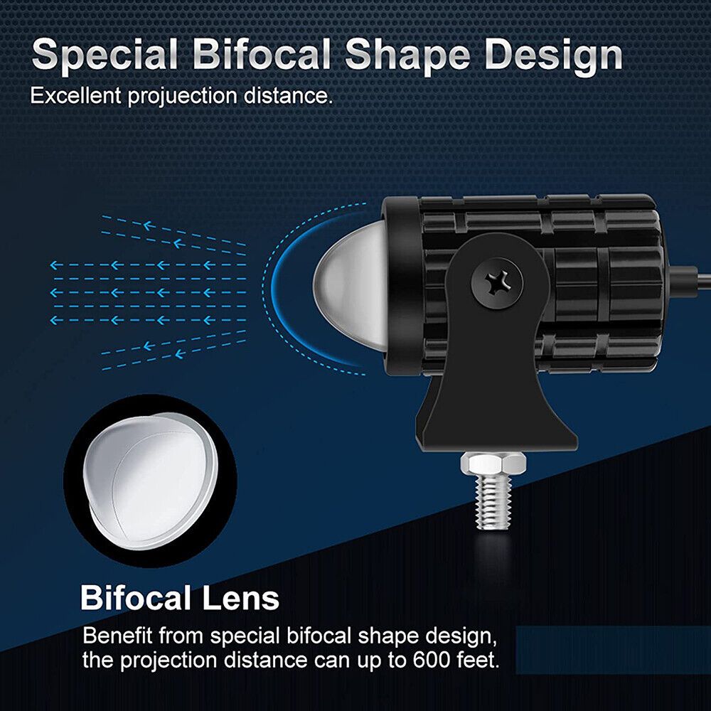 Motorcycle spotlight adopts high power chip, high brightness, strong light transmission, and can have a long service life.