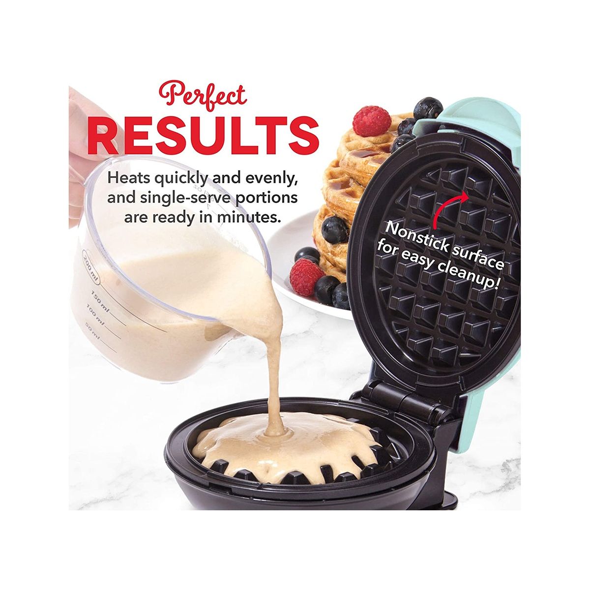 Not just waffles: make your favorite classic breakfast, or be with waffles, or even cookie pizza. Any batter will be "waffle" into a single serving. It is very suitable for family or going out.